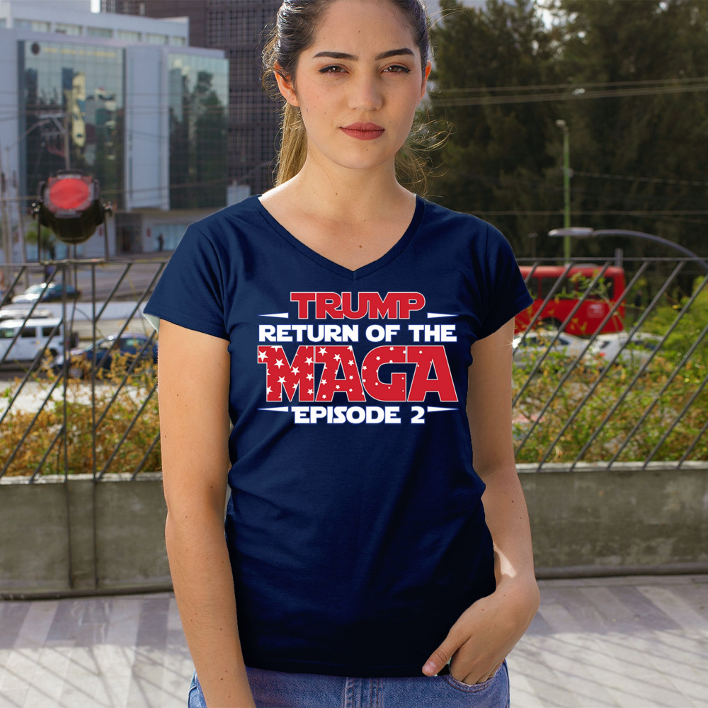 Join the "Return of the MAGA: Episode 2" movement. Celebrate Donald J. Trump, the Red Wave, and America First values with this bold design.