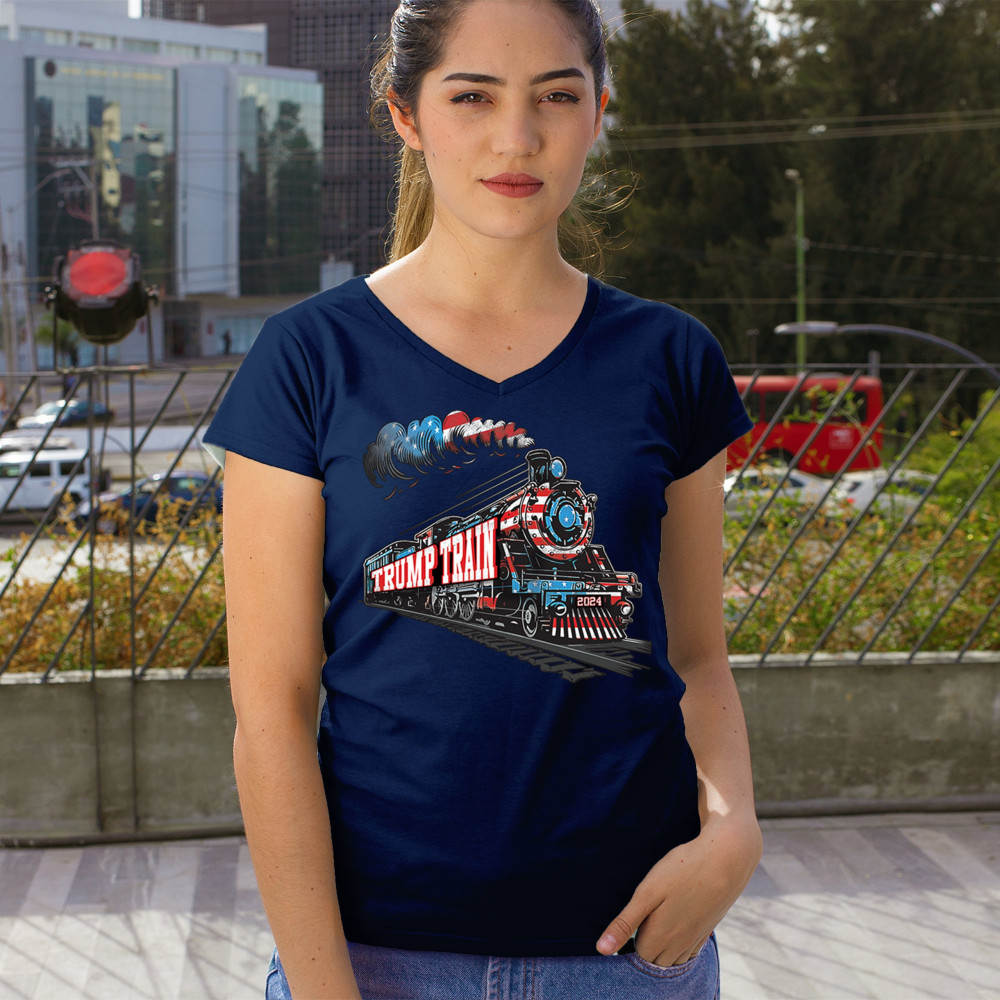 Hop on the Trump Train and support America First! This bold, patriotic tee is perfect for Republicans, conservatives, and the Red Wave movement.