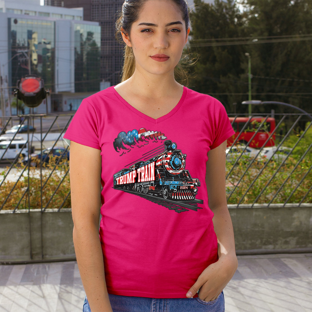 Hop on the Trump Train and support America First! This bold, patriotic tee is perfect for Republicans, conservatives, and the Red Wave movement.