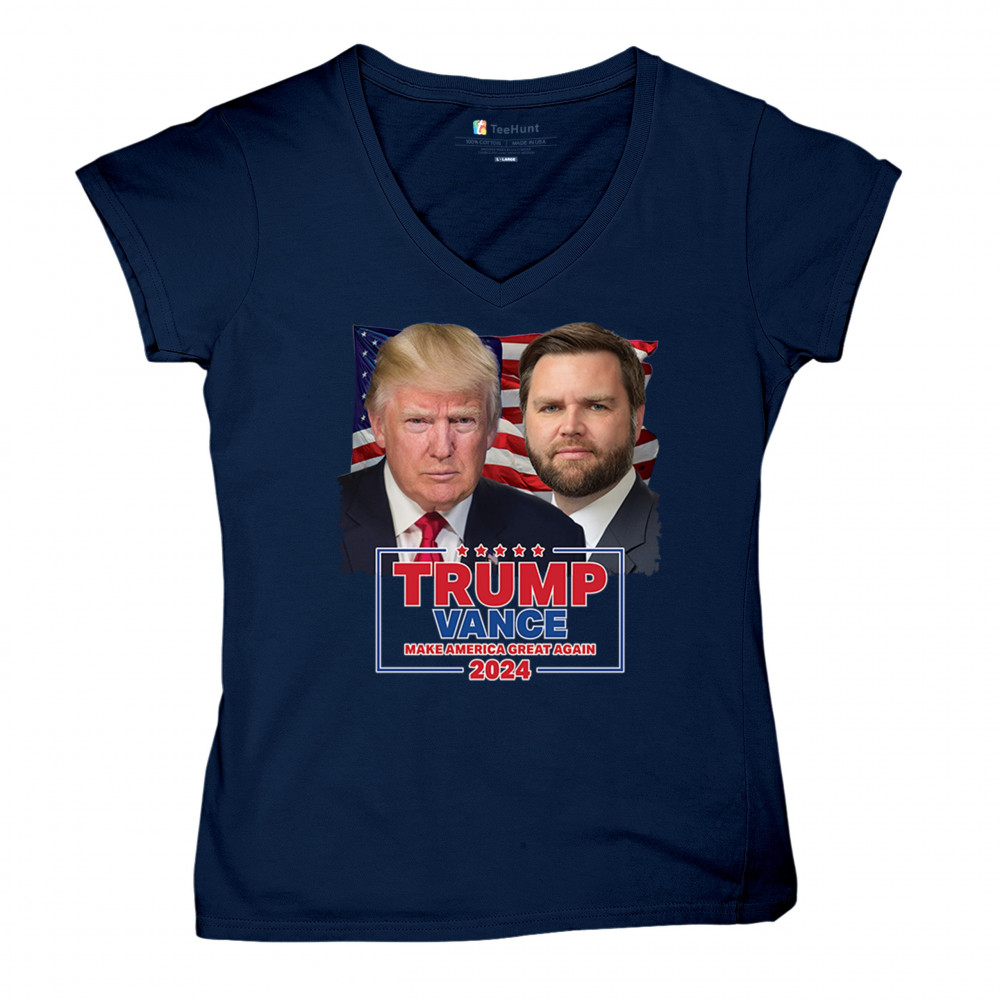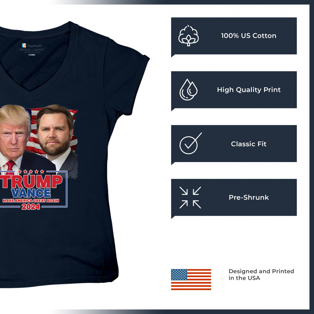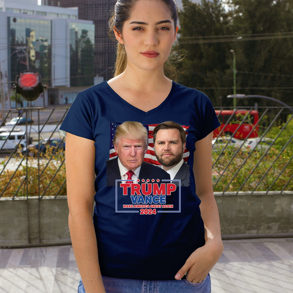 Show your support for Trump-Vance 2024 with this bold design featuring Trump and Vance against the American flag. Perfect for rallies and political events.