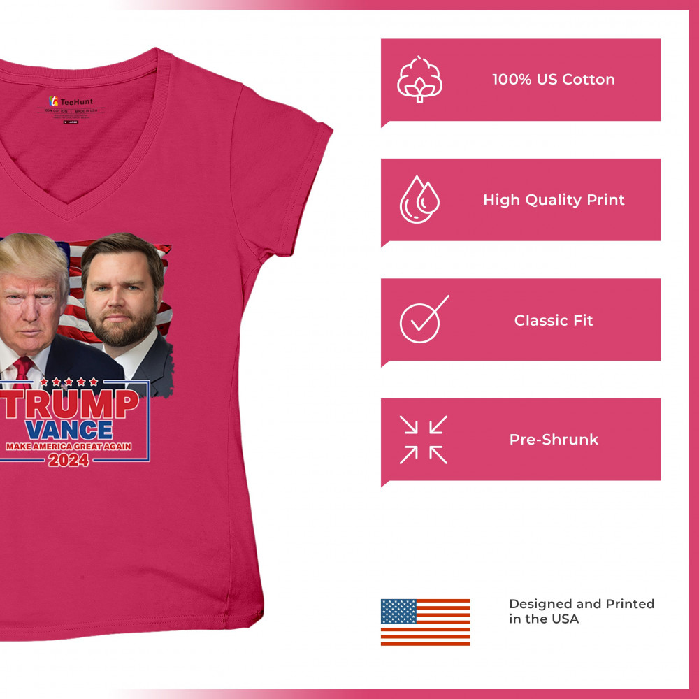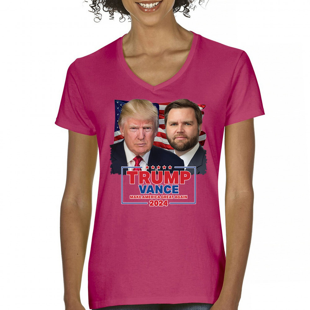 Show your support for Trump-Vance 2024 with this bold design featuring Trump and Vance against the American flag. Perfect for rallies and political events.