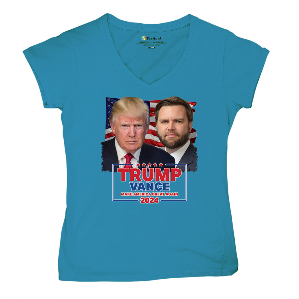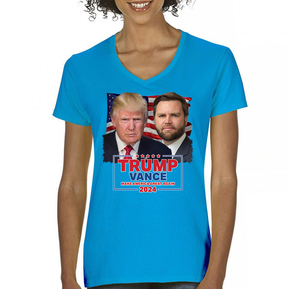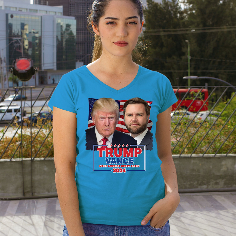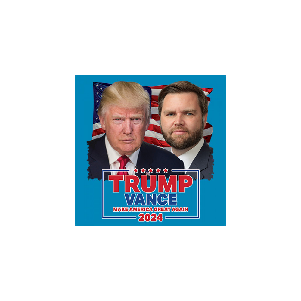 Show your support for Trump-Vance 2024 with this bold design featuring Trump and Vance against the American flag. Perfect for rallies and political events.