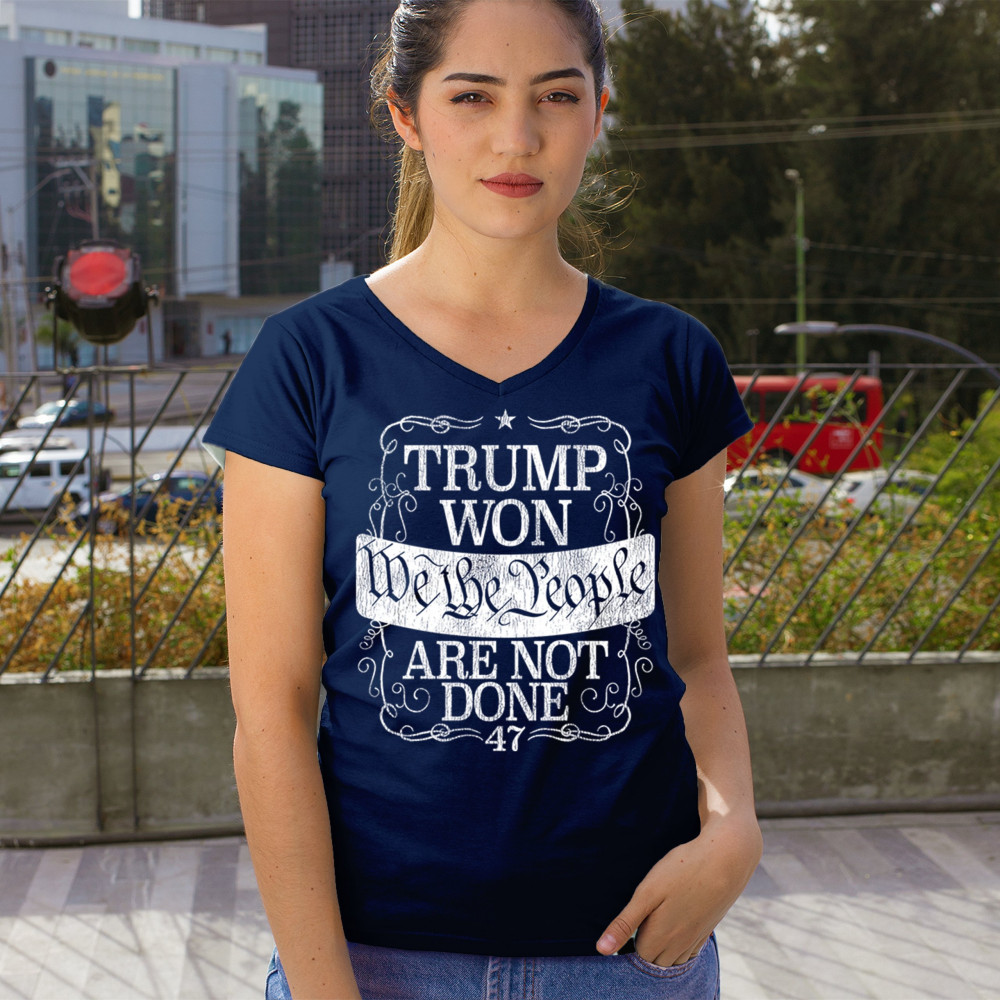 Trump Won design celebrating conservative victory, "We the People," and unity. Perfect for patriots and Republican supporters of the Red Wave.