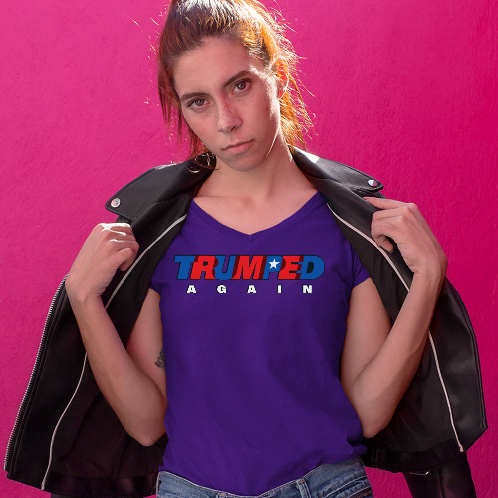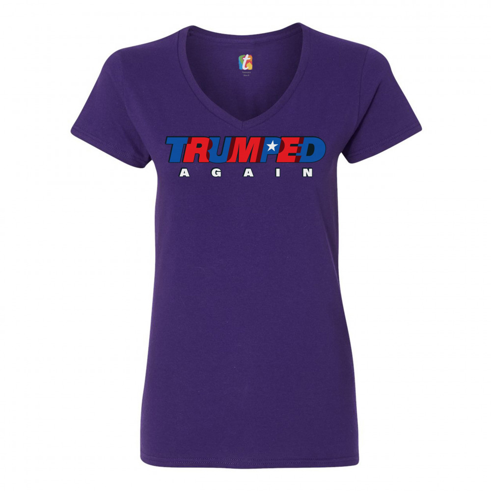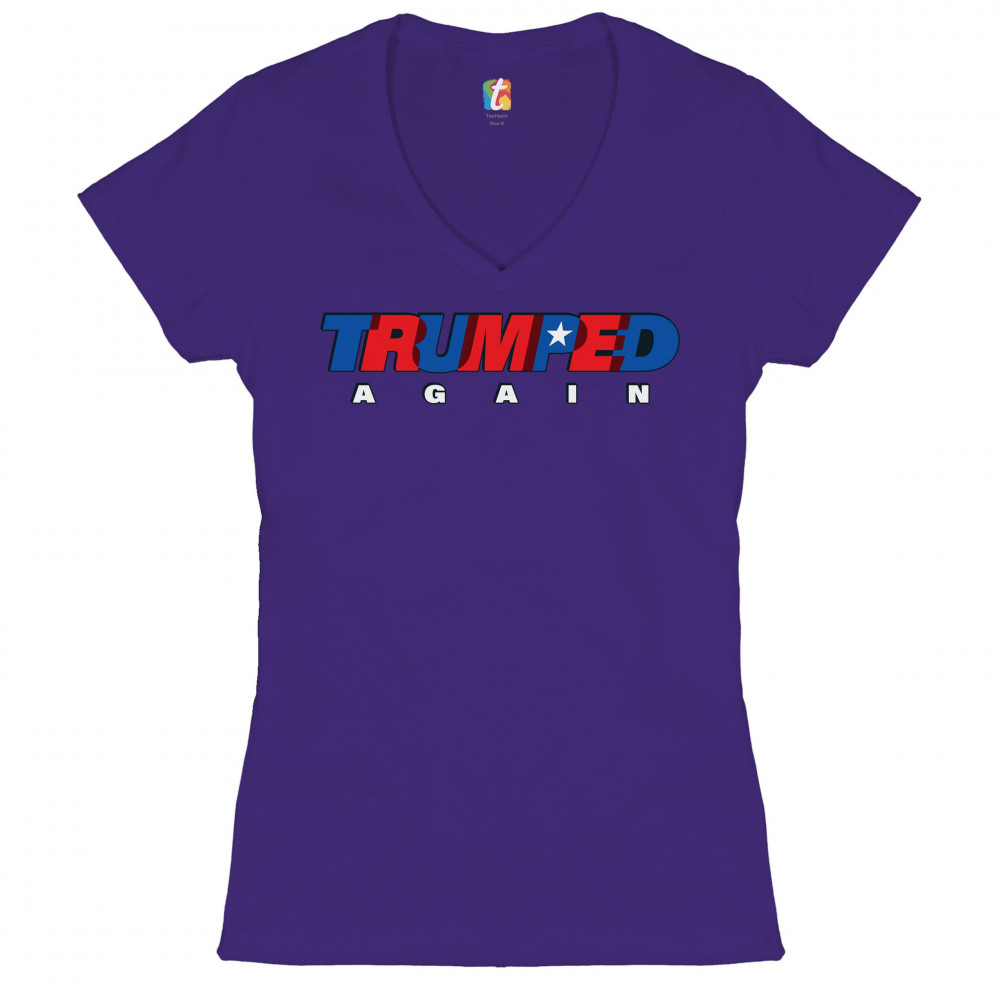 TRUMPED AGAIN women's v-neck t-shirt donald trump 2024 keep america great tee purple