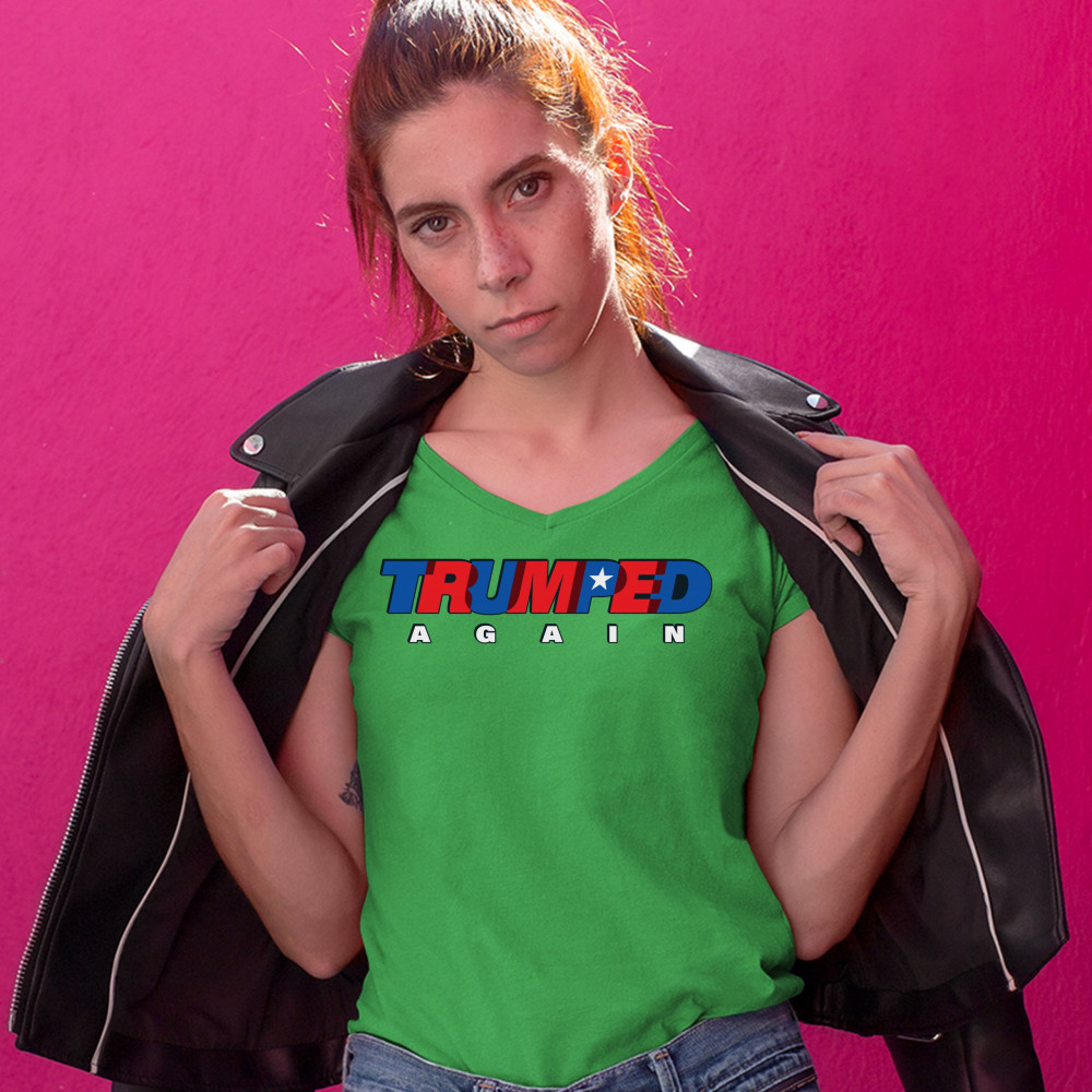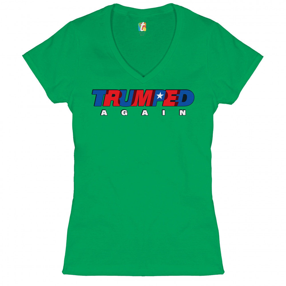TRUMPED AGAIN women's v-neck t-shirt donald trump 2024 keep america great tee green