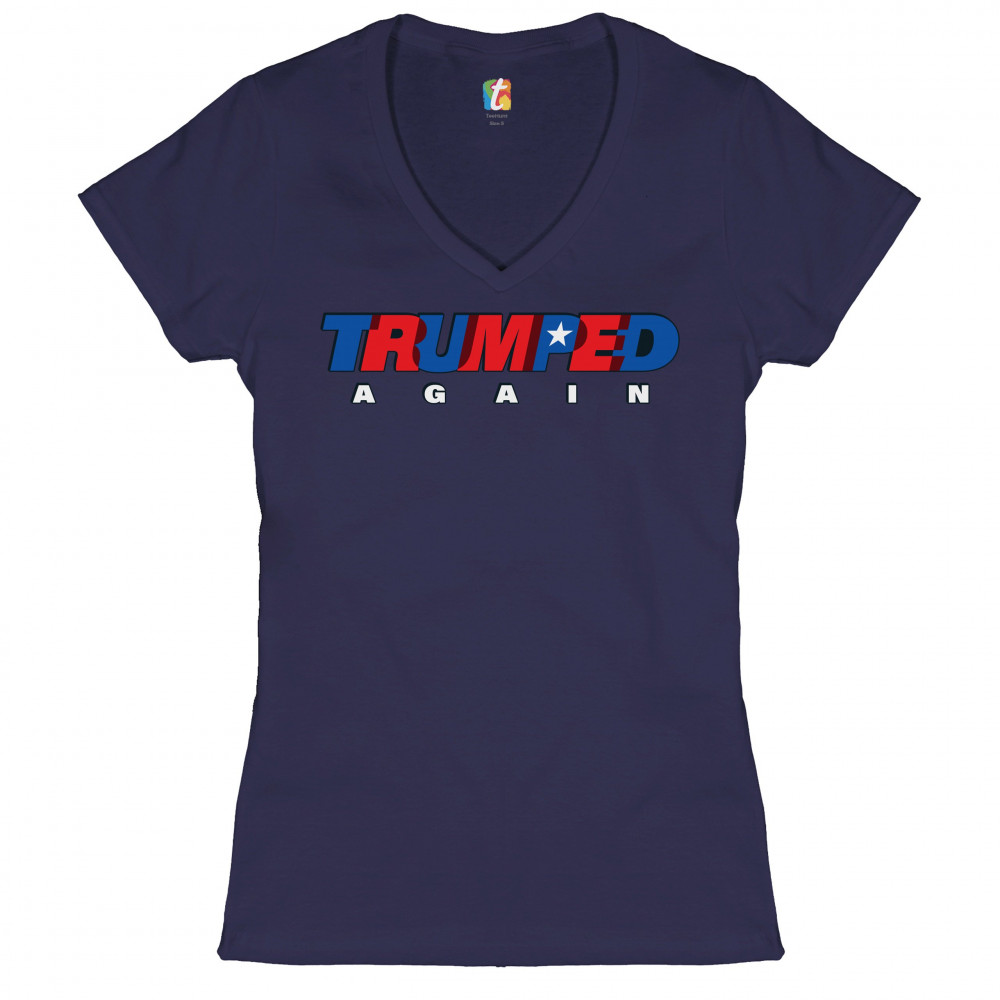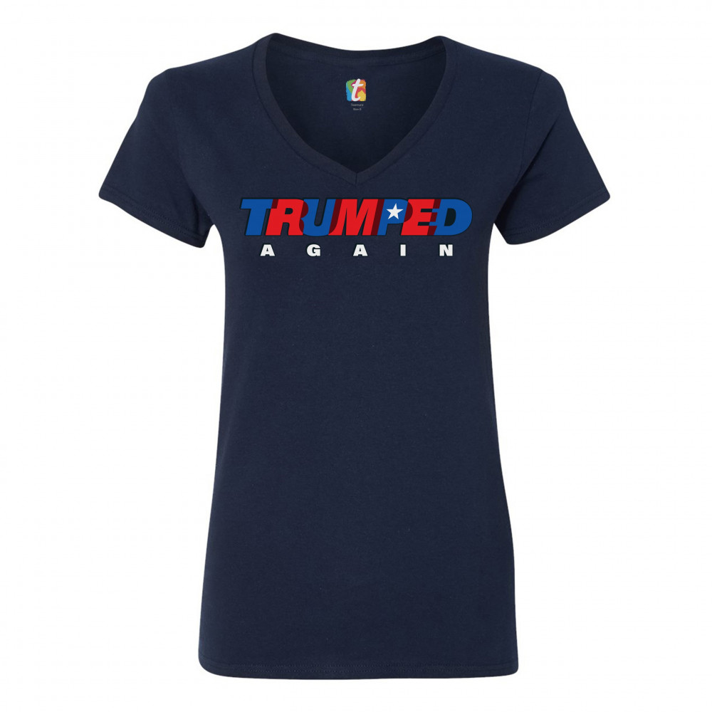 TRUMPED AGAIN women's v-neck t-shirt donald trump 2024 keep america great tee navy blue