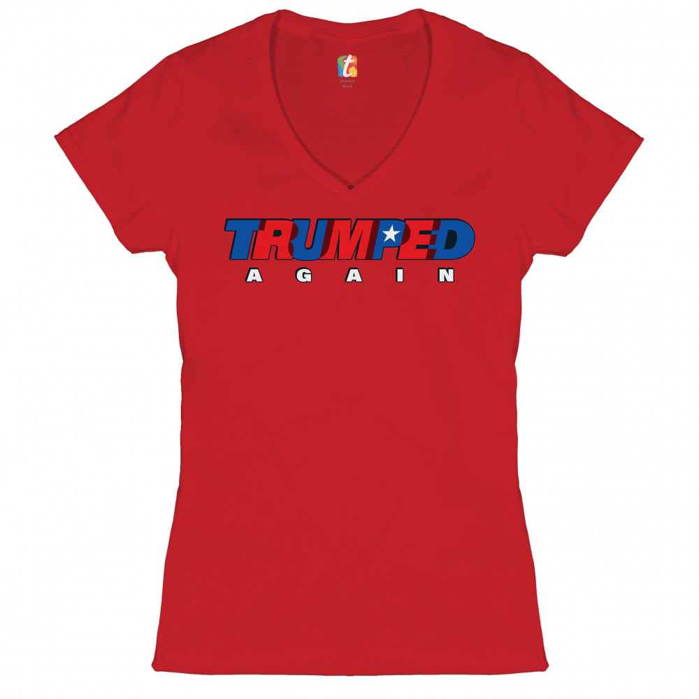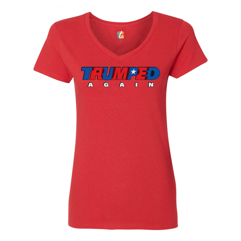 TRUMPED AGAIN women's v-neck t-shirt donald trump 2024 keep america great tee red
