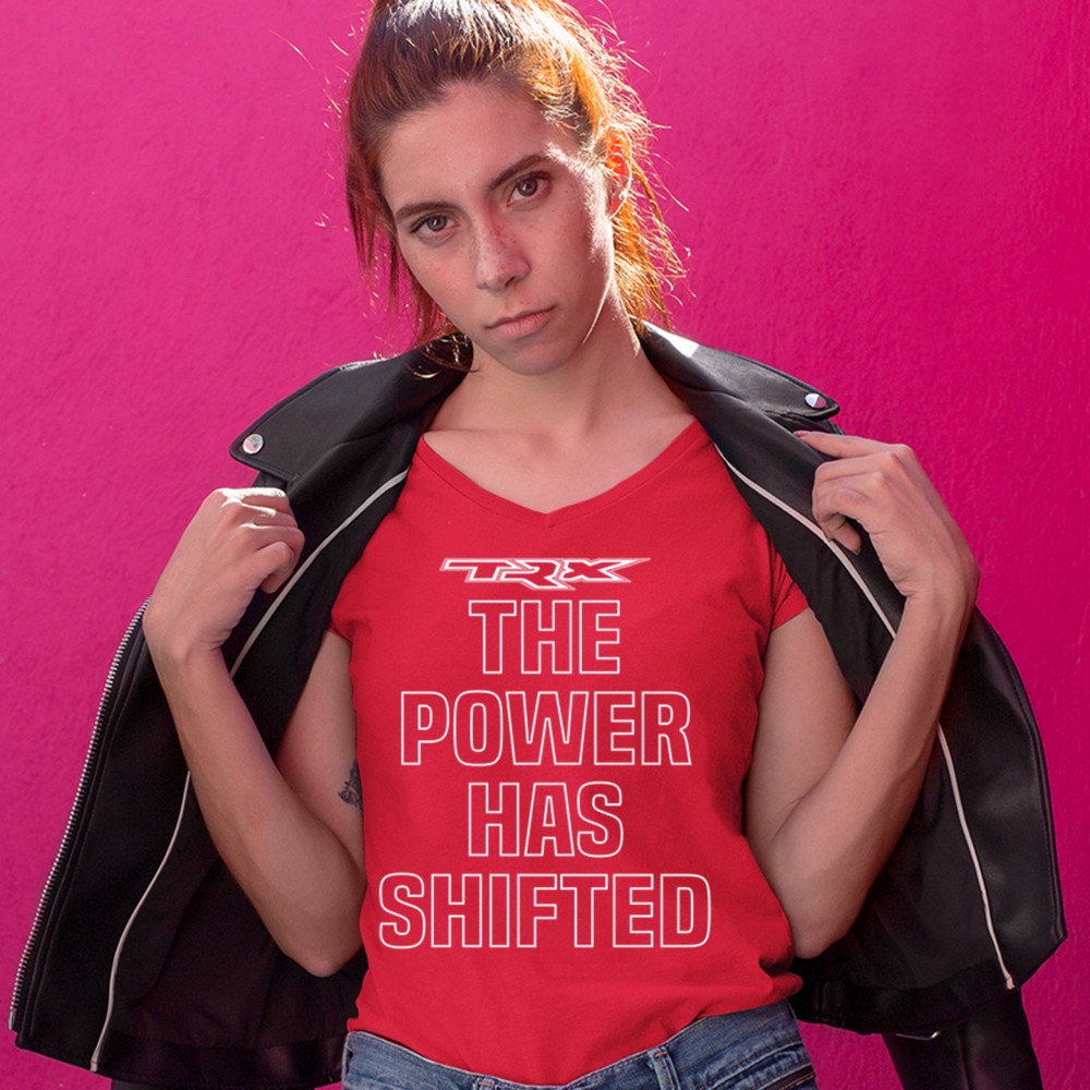 TRX THE POWER HAS SHIFTED women's v-neck t-shirt ram trucks licensed tee red