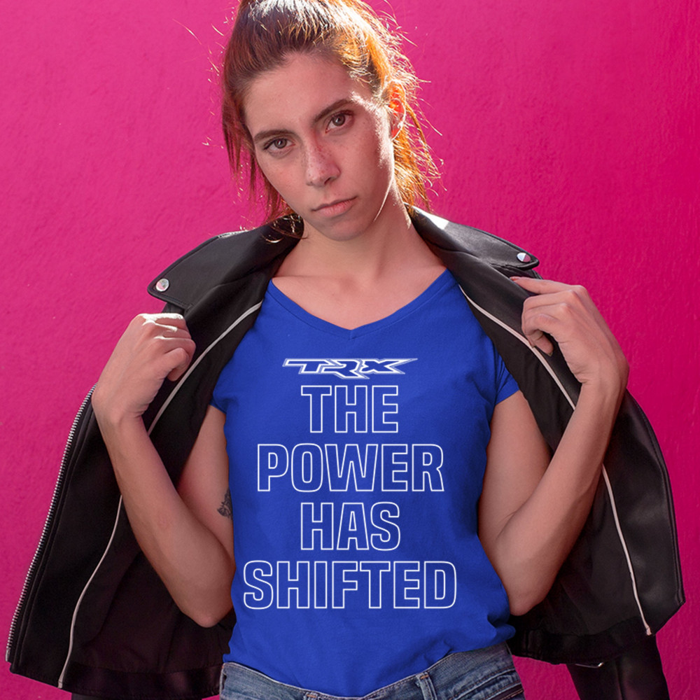 TRX THE POWER HAS SHIFTED women's v-neck t-shirt ram trucks licensed tee royal blue