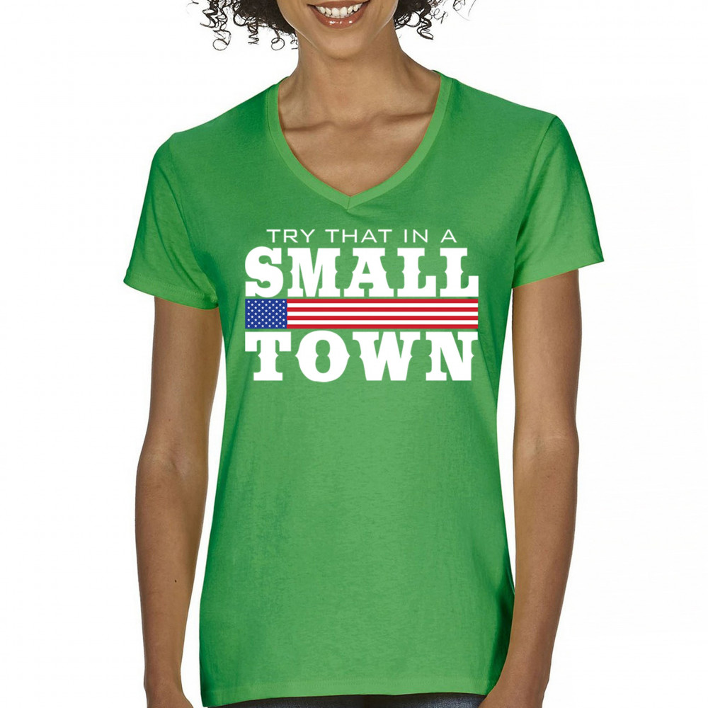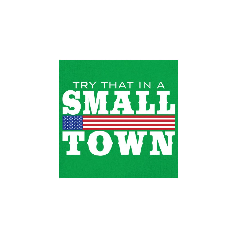 Celebrate small-town pride with our "Try That In A Small Town" design. Perfect for patriotic events, it features a bold American flag graphic.