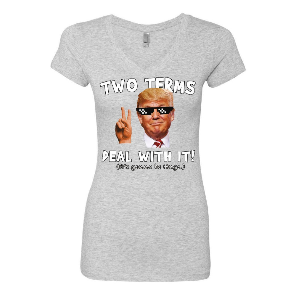 TWO TERMS DEAL WITH IT women's v-neck t-shirt donald trump troll meme maga 2020 gray