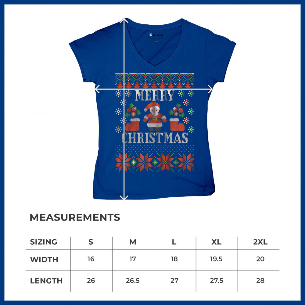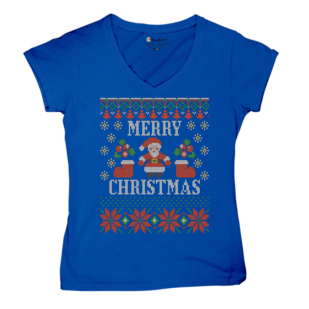 UGLY SWEATER SANTA CLAUS women's v-neck t-shirt let it snow christmas xmas tee royal blue