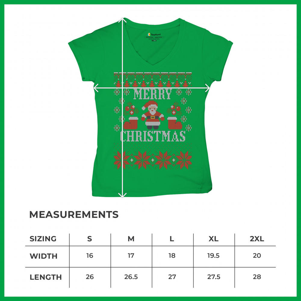 UGLY SWEATER SANTA CLAUS women's v-neck t-shirt let it snow christmas xmas tee green