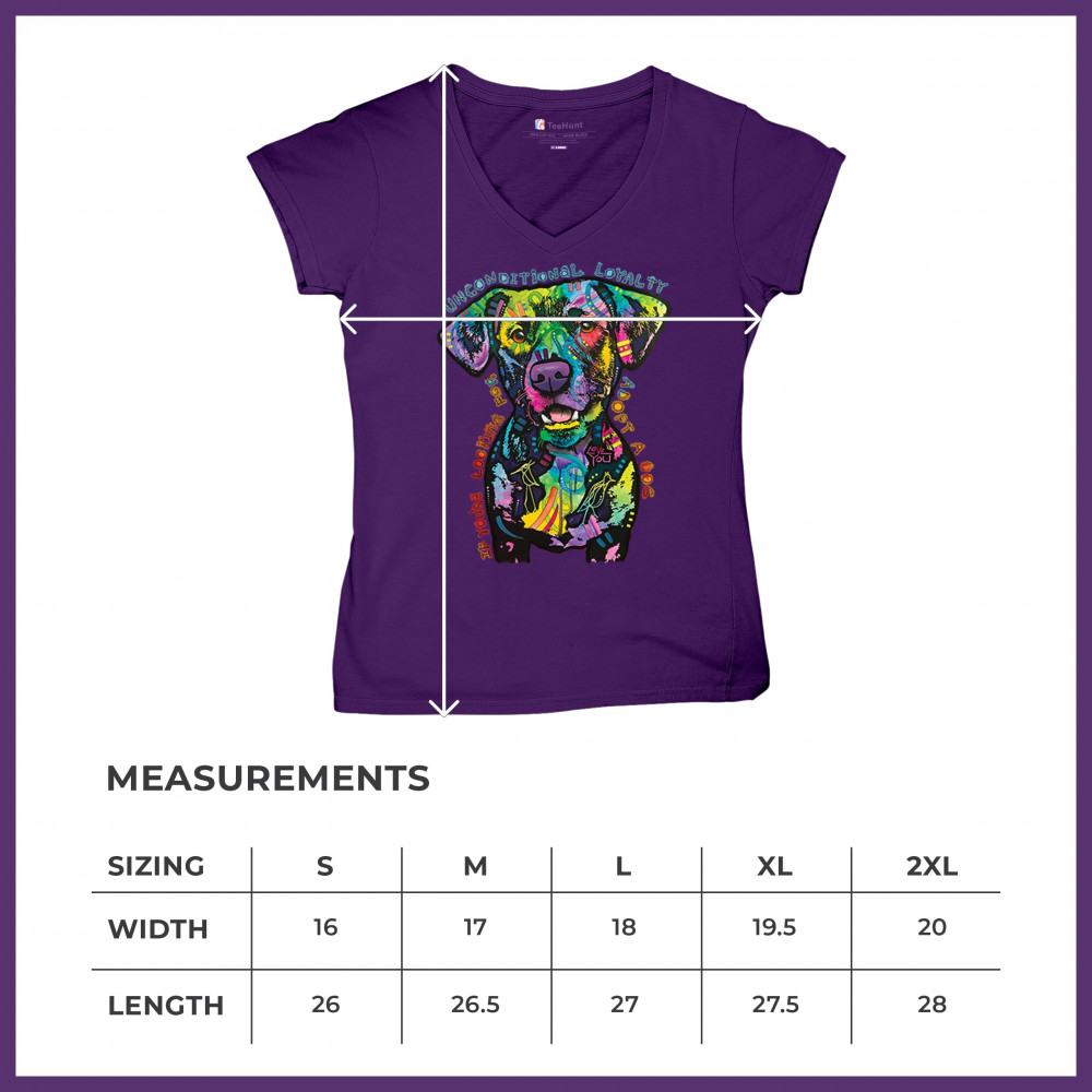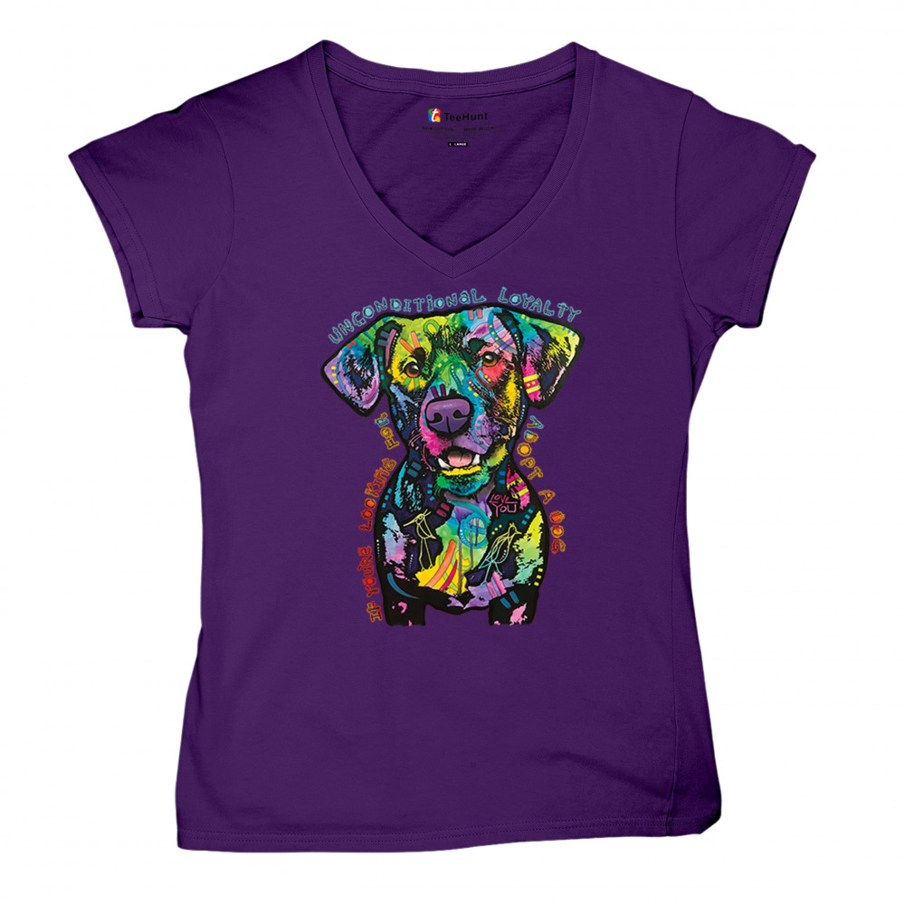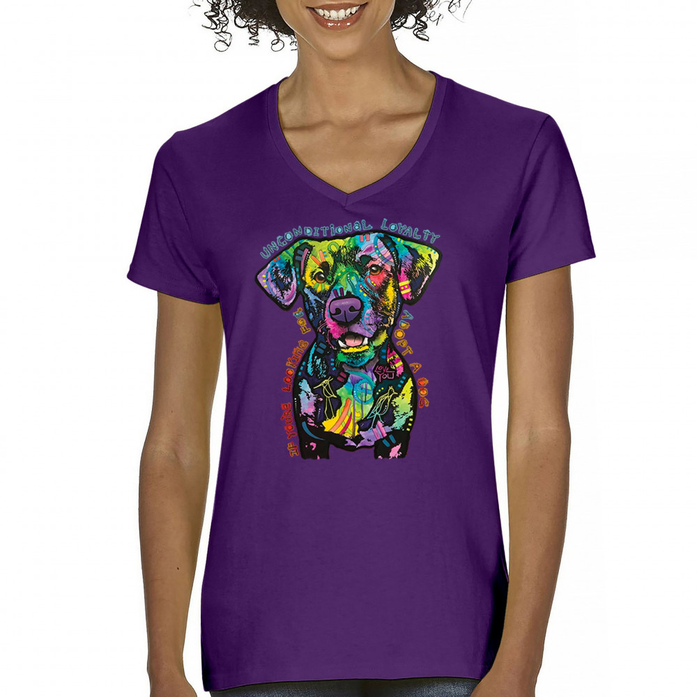 UNCONDITIONAL LOYALTY women's v-neck t-shirt adopt a dog dean russo pets tee purple