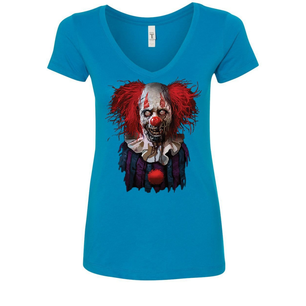 UNDEAD ZOMBIE CLOWN women's v-neck t-shirt scary creepy horror nightmare fobia turquoise