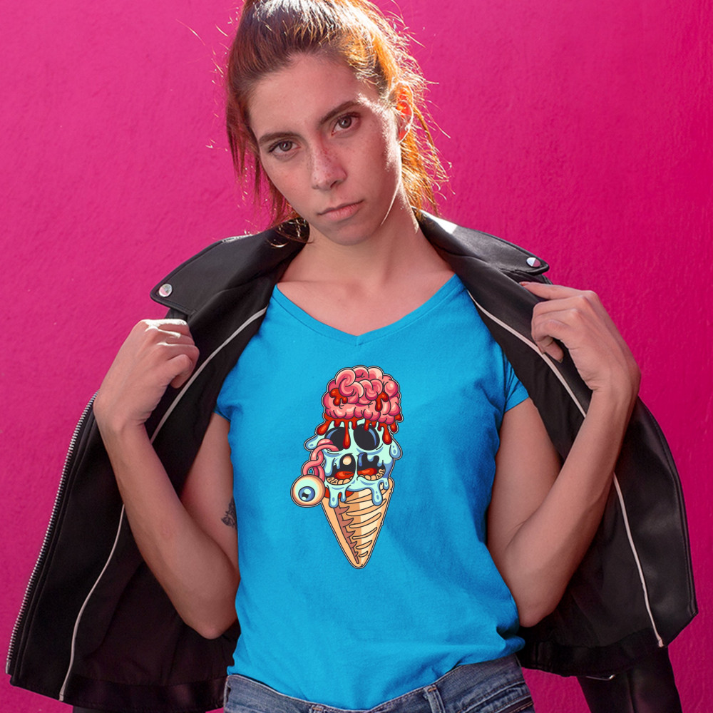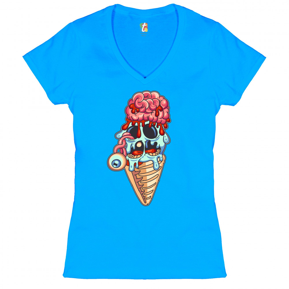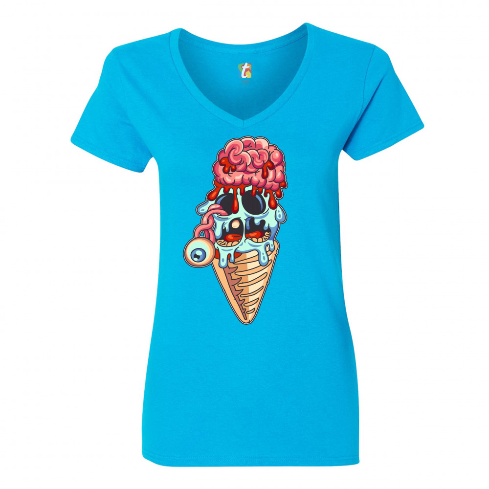 UNDEAD ZOMBIE ICE CREAM women's v-neck t-shirt happy halloween eat brains tee turquoise