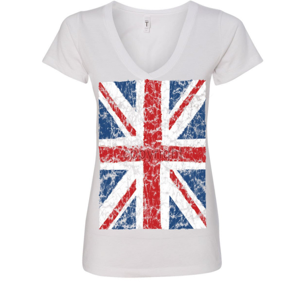 UNION JACK v-neck t-shirt united kingdom distressed british flag white
