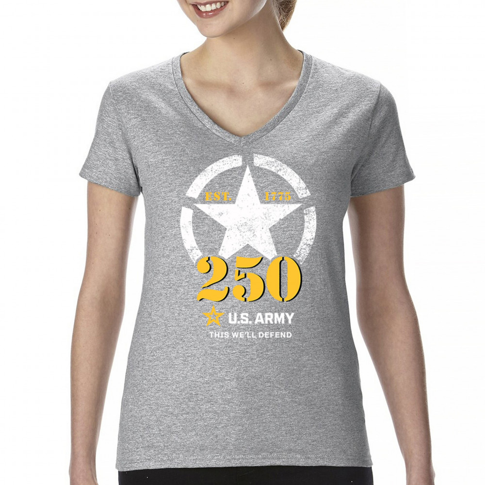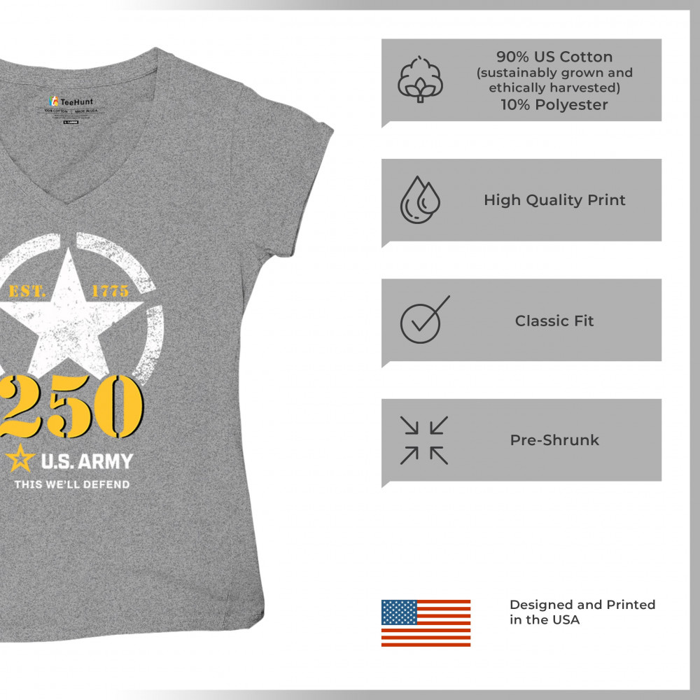 Celebrate 250 years of U.S. Army duty and pride with bold stencil design, EST 1775 mark, and patriotic “This We’ll Defend†motto.