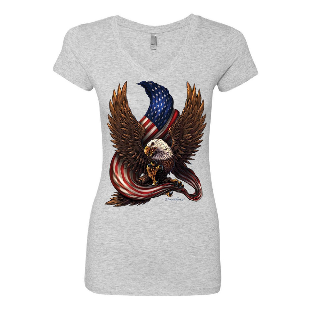 AMERICAN BALD EAGLE usa stars and stripes women's v-neck t-shirt patriot american pride bald eagle gray