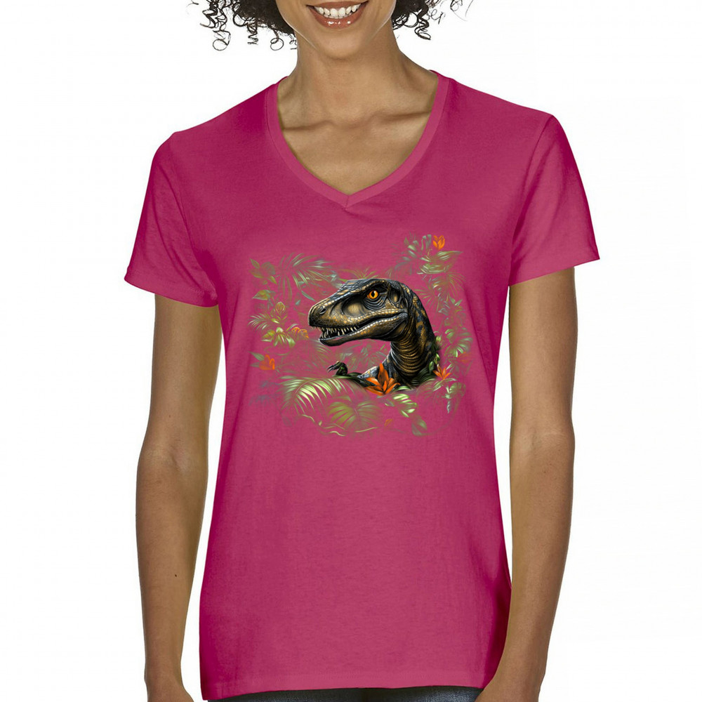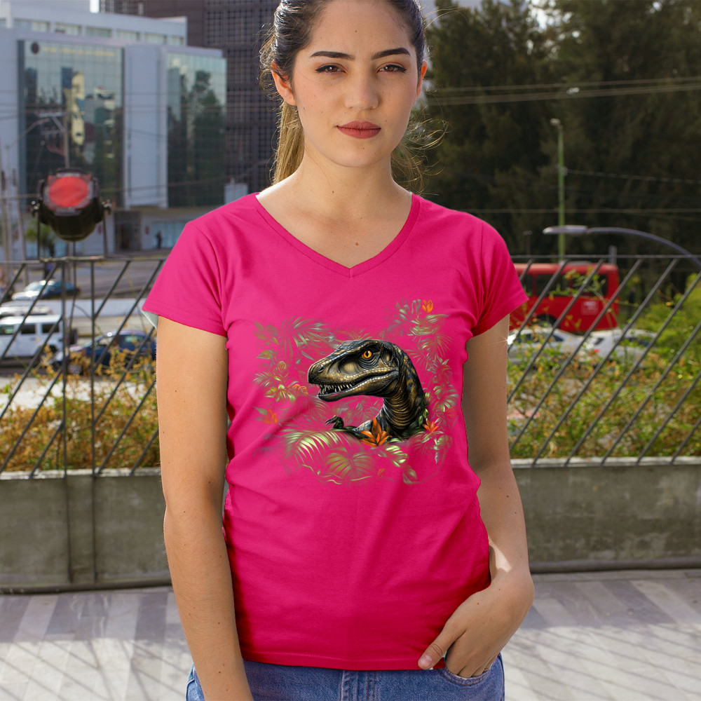 Step into the wild with this striking jungle raptor design. A highly detailed velociraptor peeks from vivid tropical foliage and flowers, perfect for dinosaur lovers, fossil fans, and ancient creature enthusiasts. Whether for Jurassic adventures, museum trips, or themed events, this design unleashes untamed prehistoric energy.