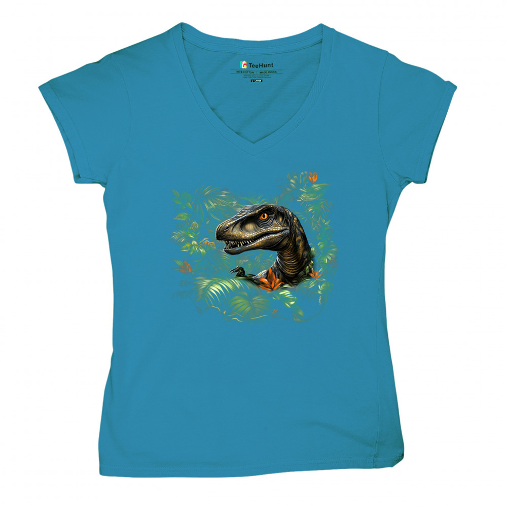 Realistic velociraptor in jungle foliage. Perfect for dinosaur lovers, fossil fans, Jurassic exhibits, and prehistoric adventure style.