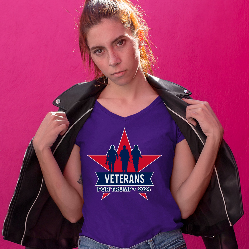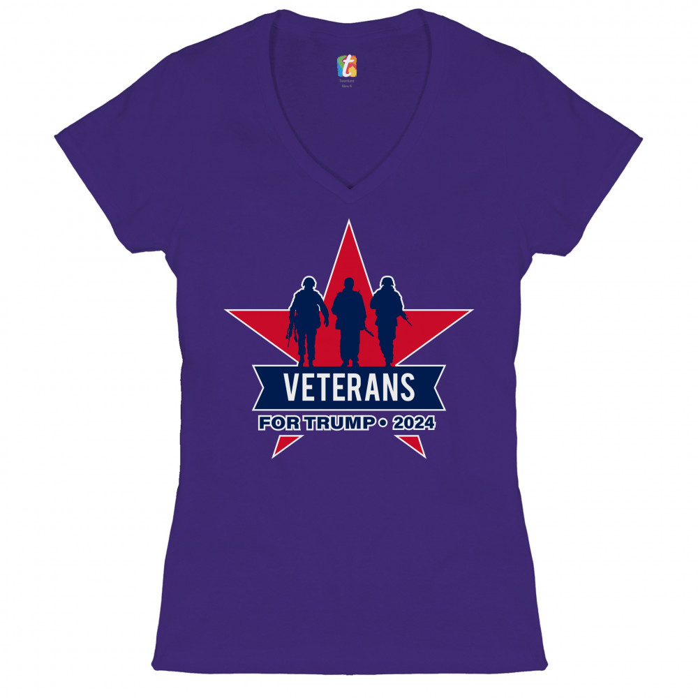 VETERANS FOR TRUMP 2024 women's v-neck t-shirt keep america great military tee purple