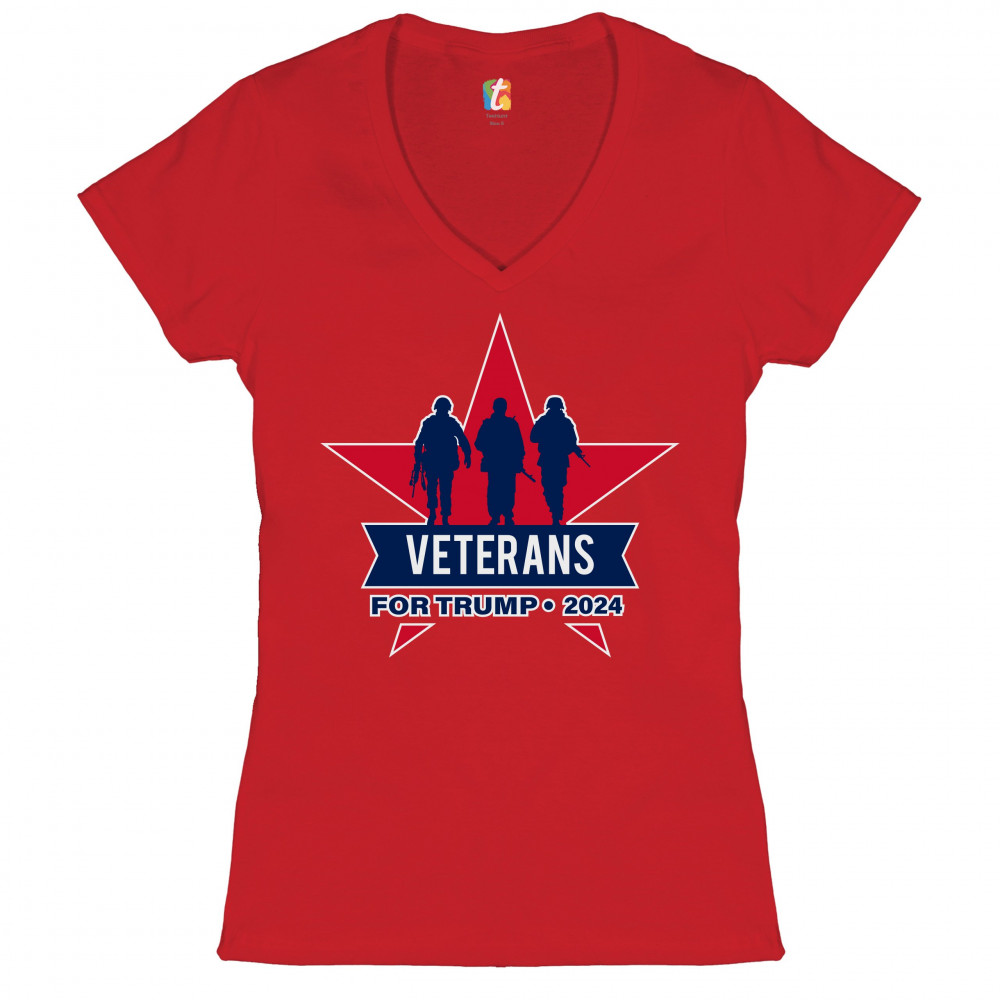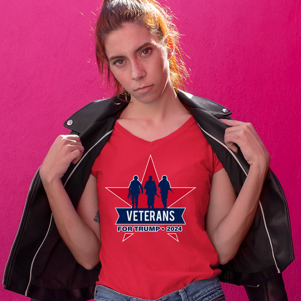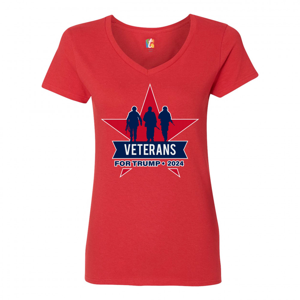 VETERANS FOR TRUMP 2024 women's v-neck t-shirt keep america great military tee red