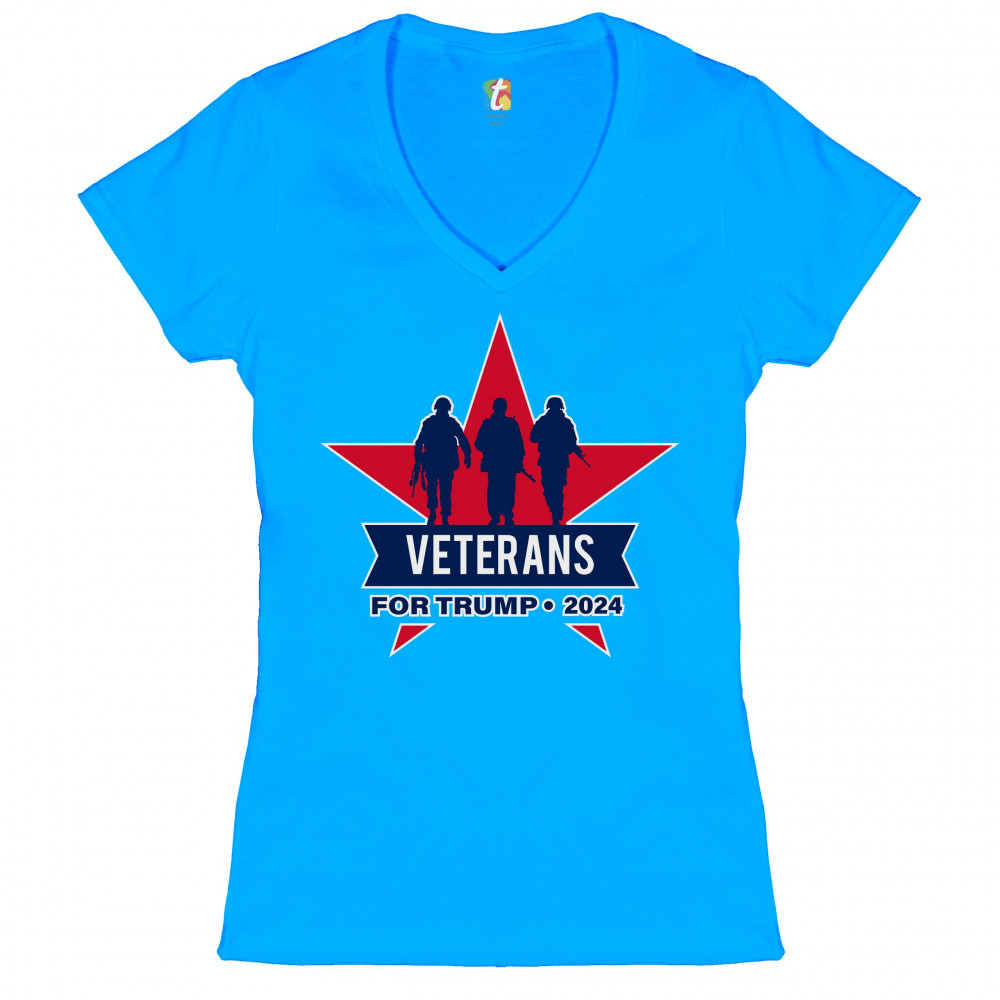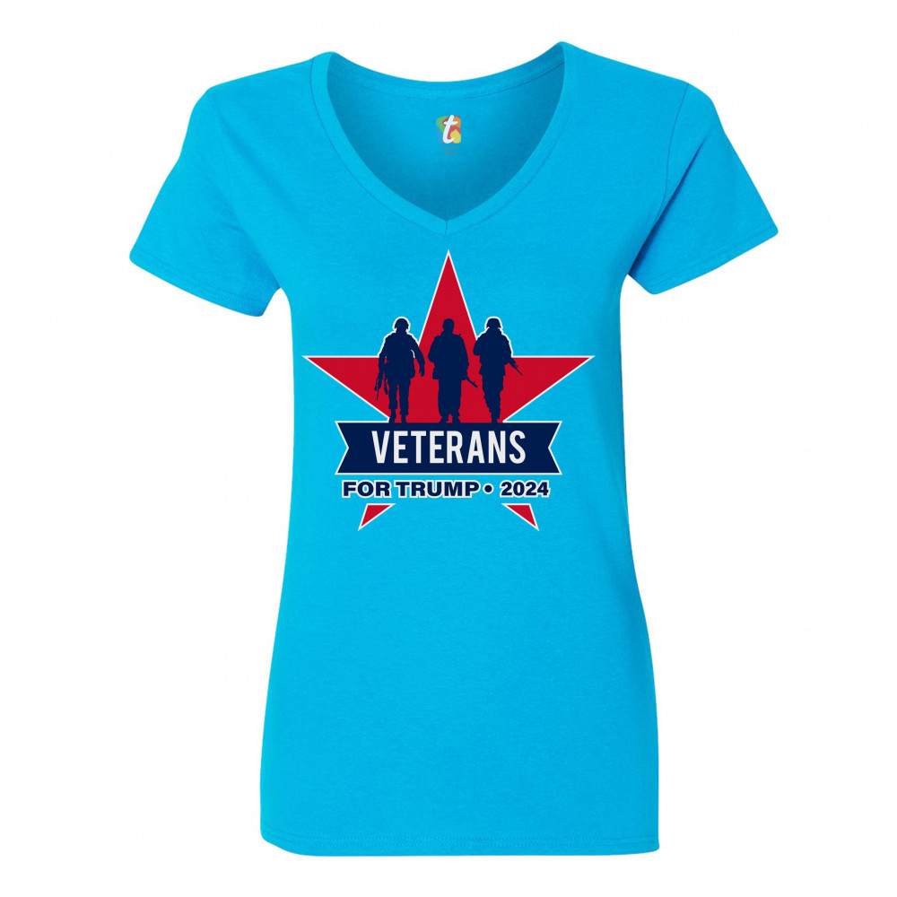 VETERANS FOR TRUMP 2024 women's v-neck t-shirt keep america great military tee turquoise