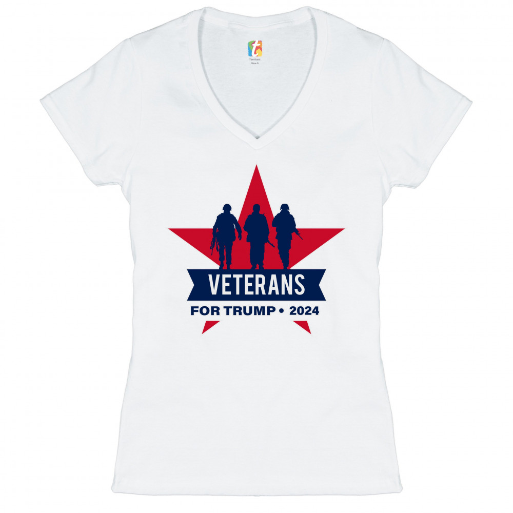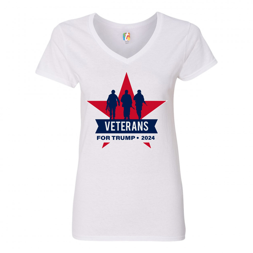 VETERANS FOR TRUMP 2024 women's v-neck t-shirt keep america great military tee white