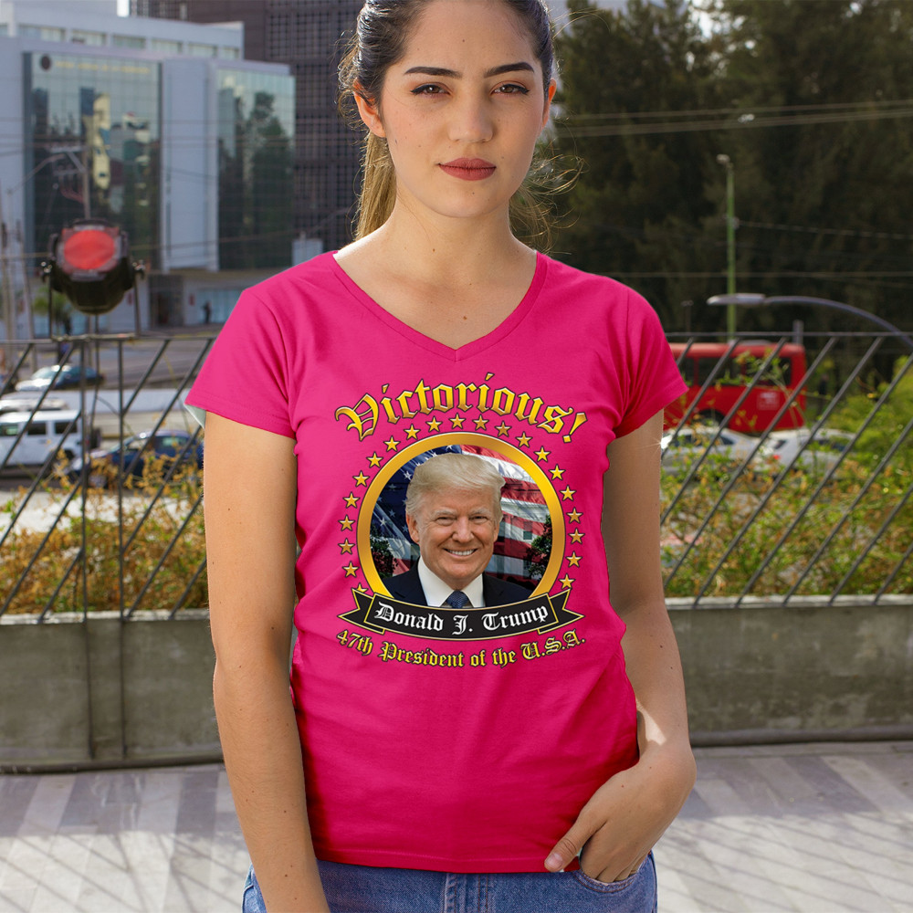 Showcase your support for Trump as the 47th President with this "Victorious" design. Perfect for patriots, America First advocates, and Red Wave supporters.