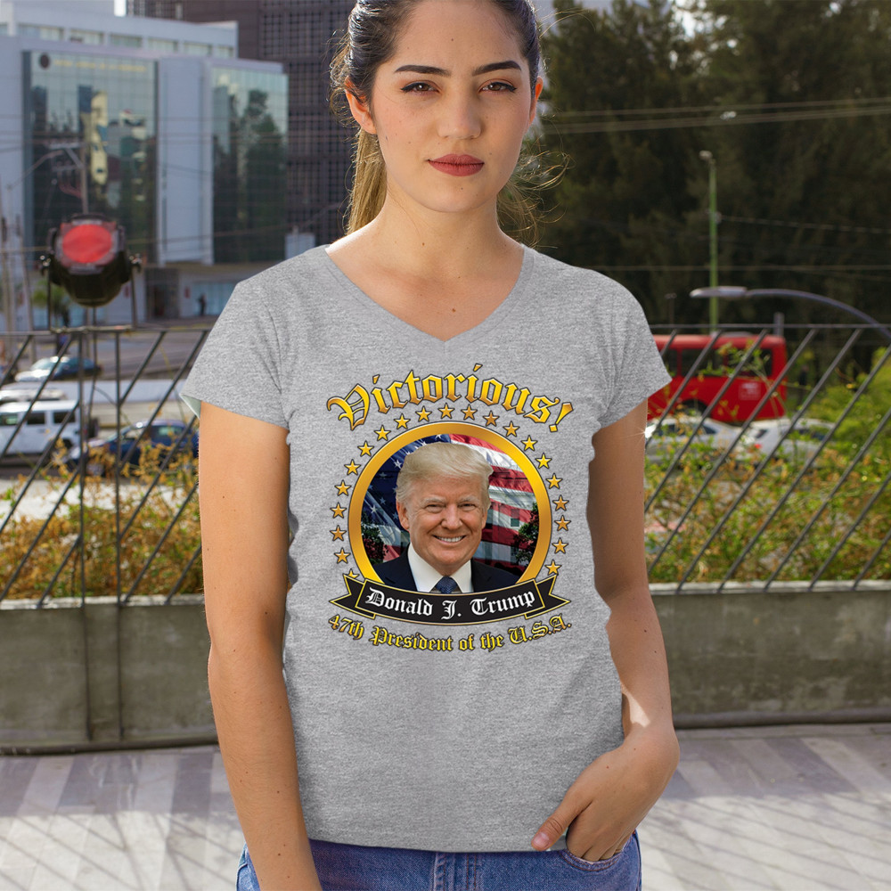 Showcase your support for Trump as the 47th President with this "Victorious" design. Perfect for patriots, America First advocates, and Red Wave supporters.