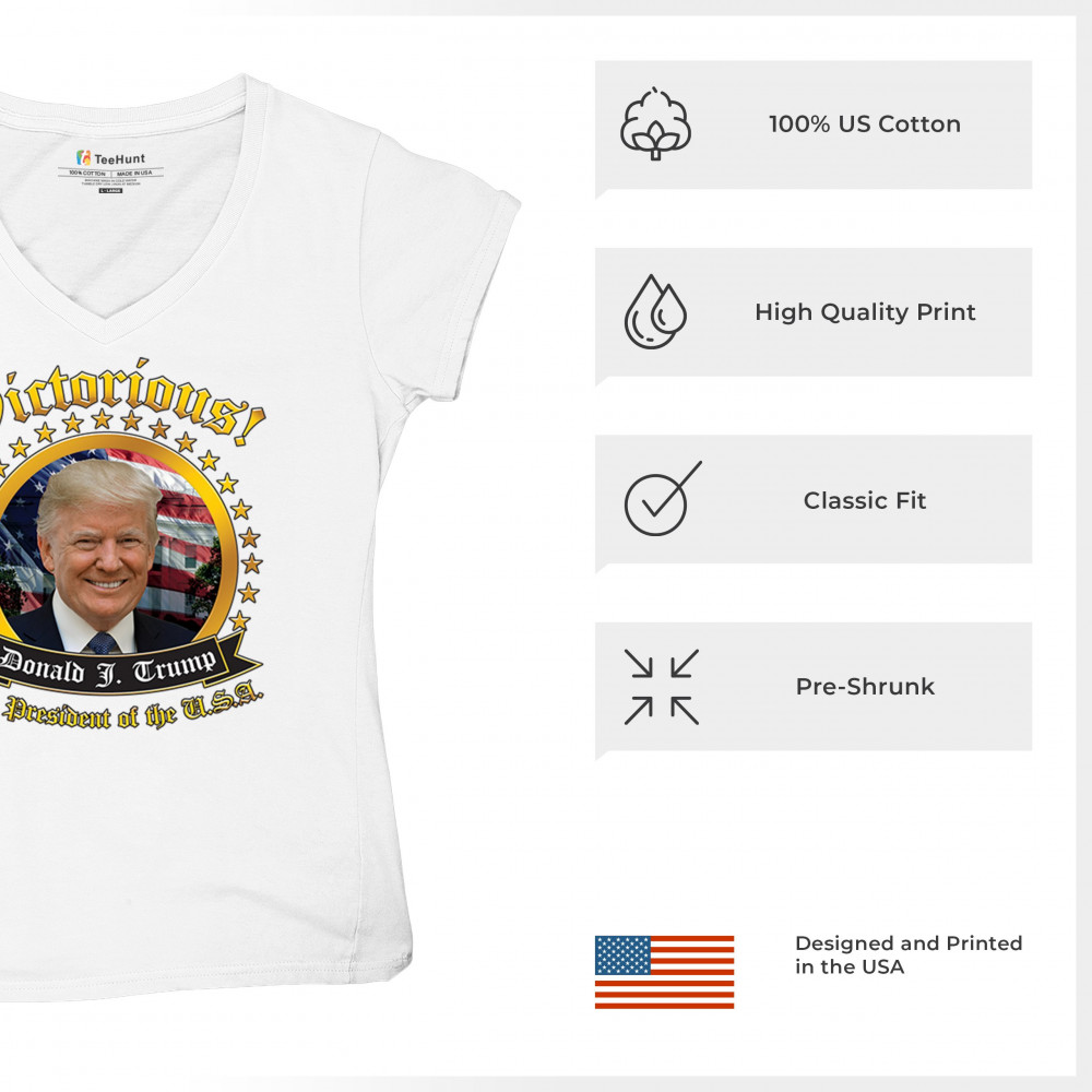 The "Victorious" design captures the spirit of Donald J. Trump’s victory as the 47th President, embodying the pride and patriotism of true American supporters. With elements of the American flag and an inspiring message, it’s a perfect symbol for Republicans, conservatives, and America First advocates. Celebrate the Red Wave and stand for a strong, united nation. Perfect for showing support at rallies, gatherings, or casual wear.