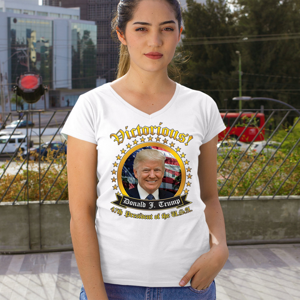 Showcase your support for Trump as the 47th President with this "Victorious" design. Perfect for patriots, America First advocates, and Red Wave supporters.