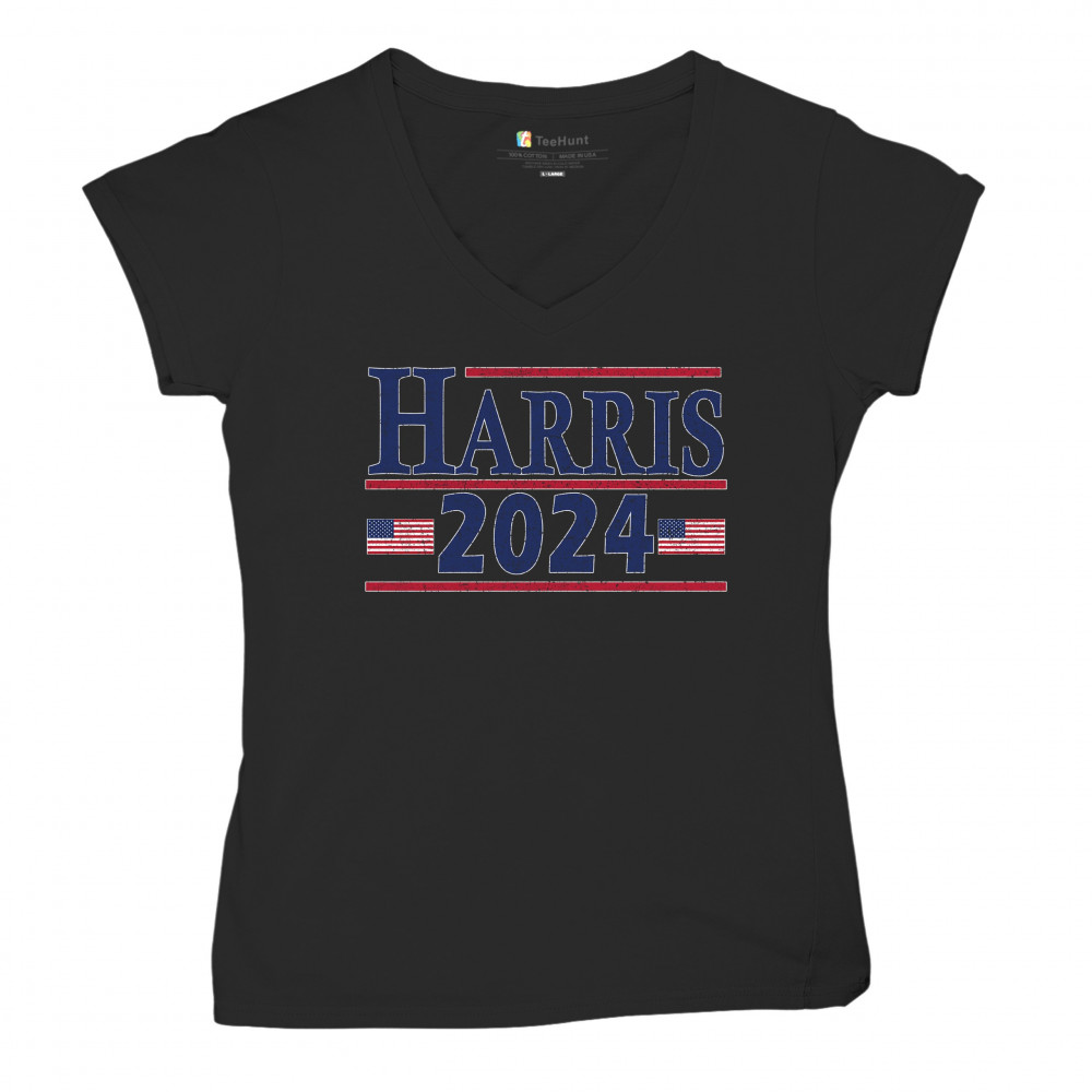 Show your support for Kamala Harris with this bold "Harris 2024" t-shirt, featuring American flags. Perfect for rallies and events. Join the movement today!