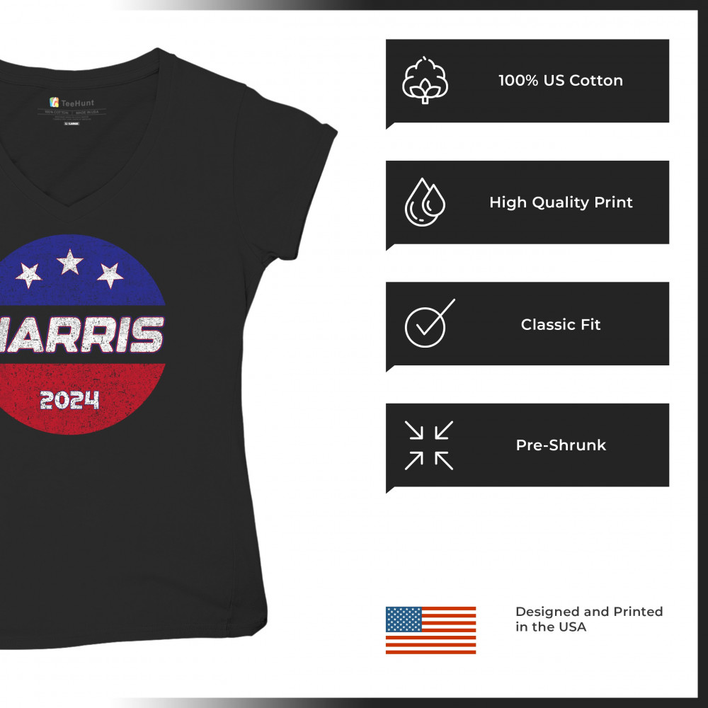 Embrace your political stance with this Kamala Harris 2024 design, crafted for supporters of the Democratic party and those who believe in a brighter, inclusive future. The design features the American flag and bold lettering, making it a perfect choice for rallies, political events, or casual wear. It underscores the historic significance of electing the first female president and represents a broad coalition of black Americans, Hispanic Americans, LGBTQ, and other minority groups. Stand out and show your unwavering support for Kamala Harris and her vision for America.