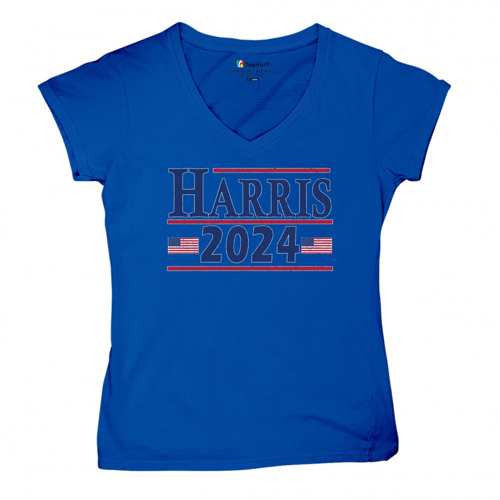 Show your support for Kamala Harris with this bold "Harris 2024" t-shirt, featuring American flags. Perfect for rallies and events. Join the movement today!