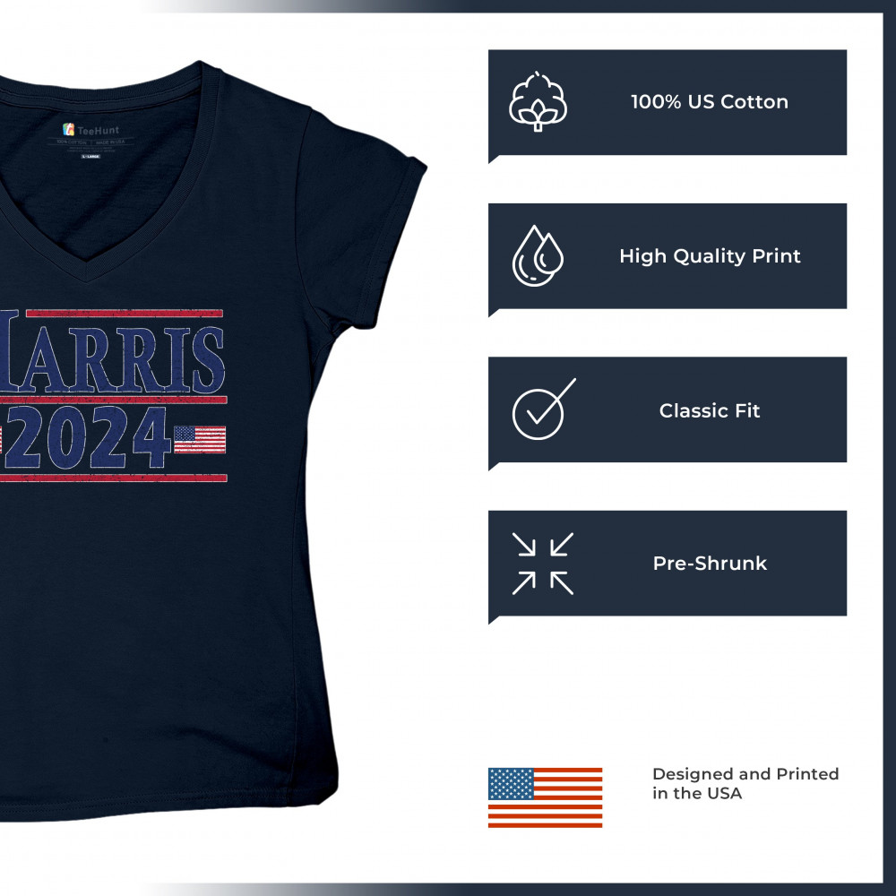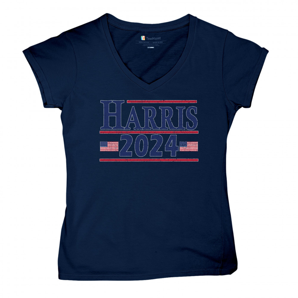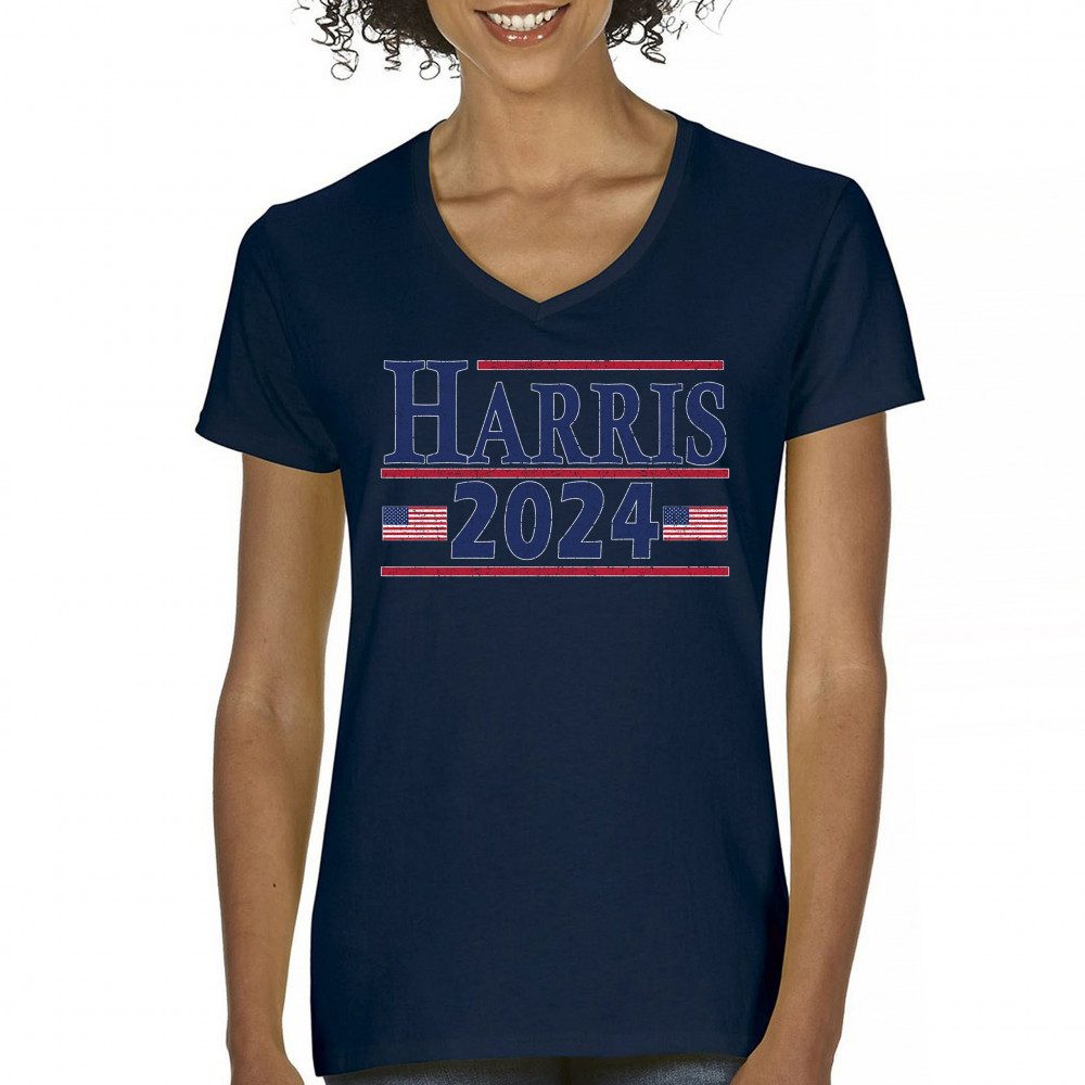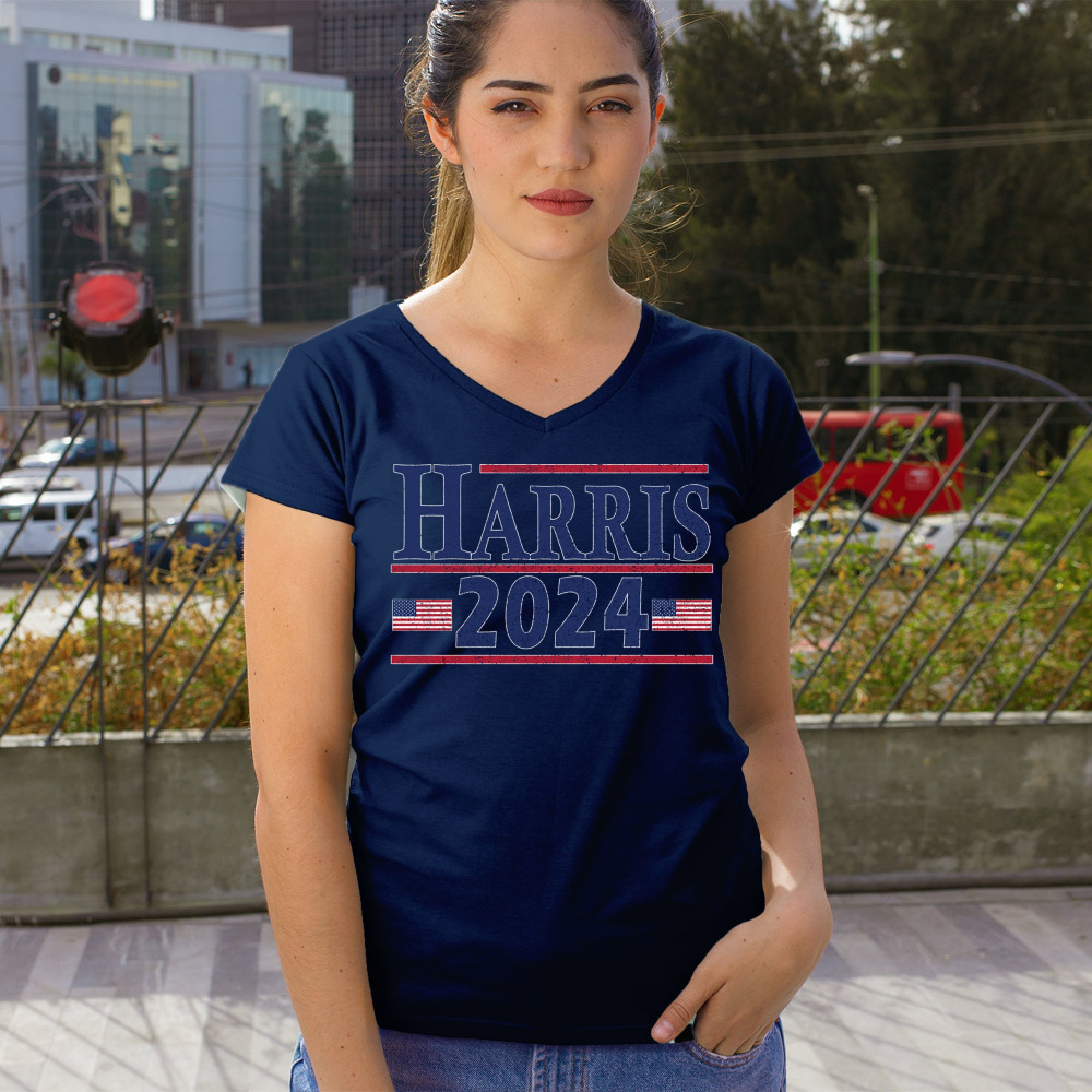 Show your support for Kamala Harris with this bold "Harris 2024" t-shirt, featuring American flags. Perfect for rallies and events. Join the movement today!