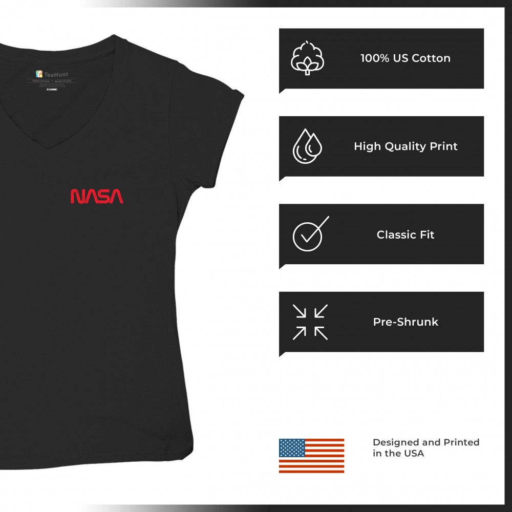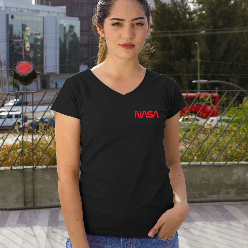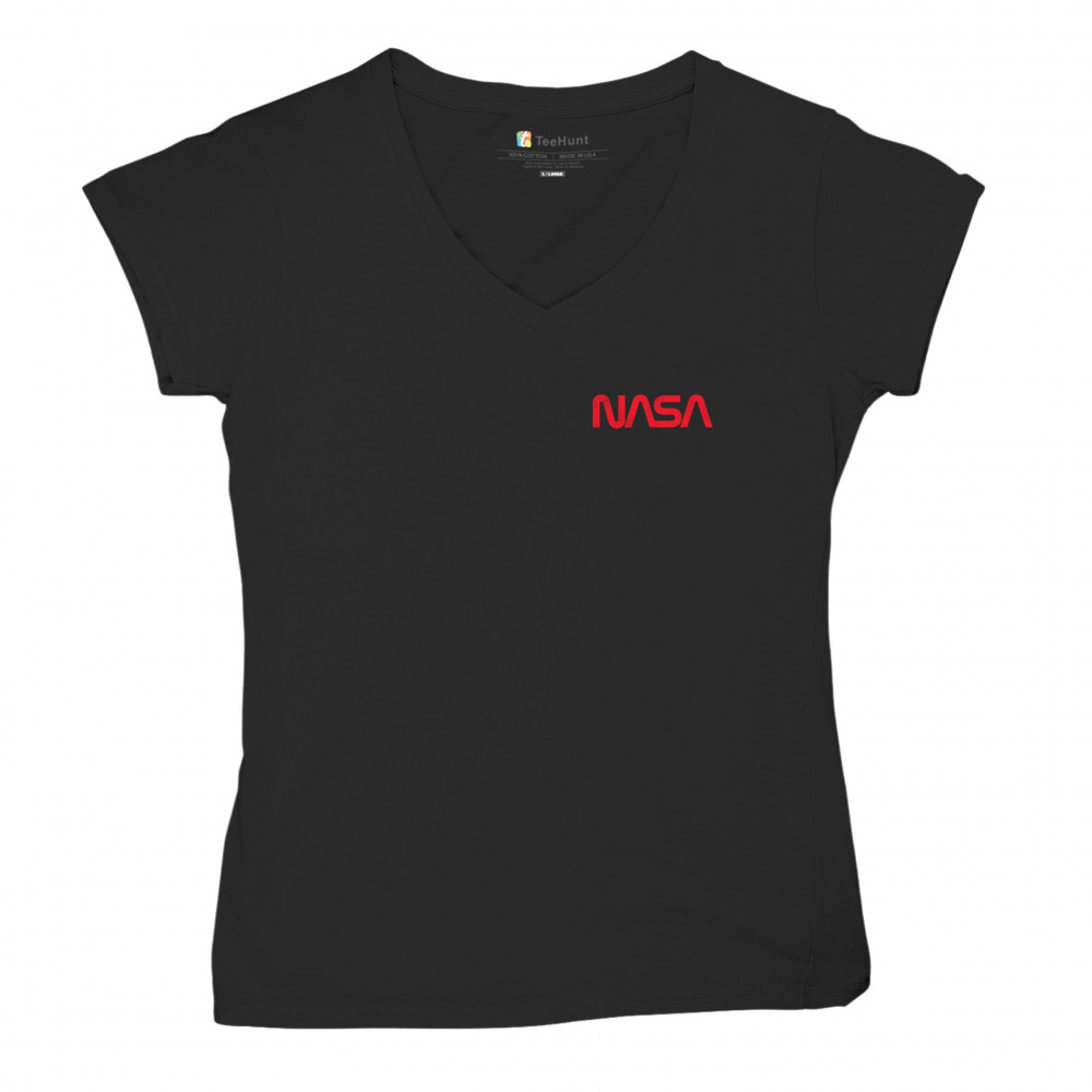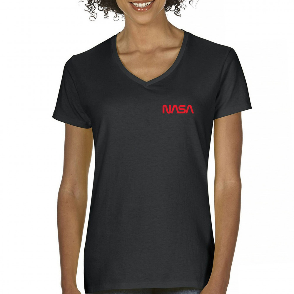 VINTAGE NASA LOGO CREST women's v-neck t-shirt space astronaut souvenir emblem black