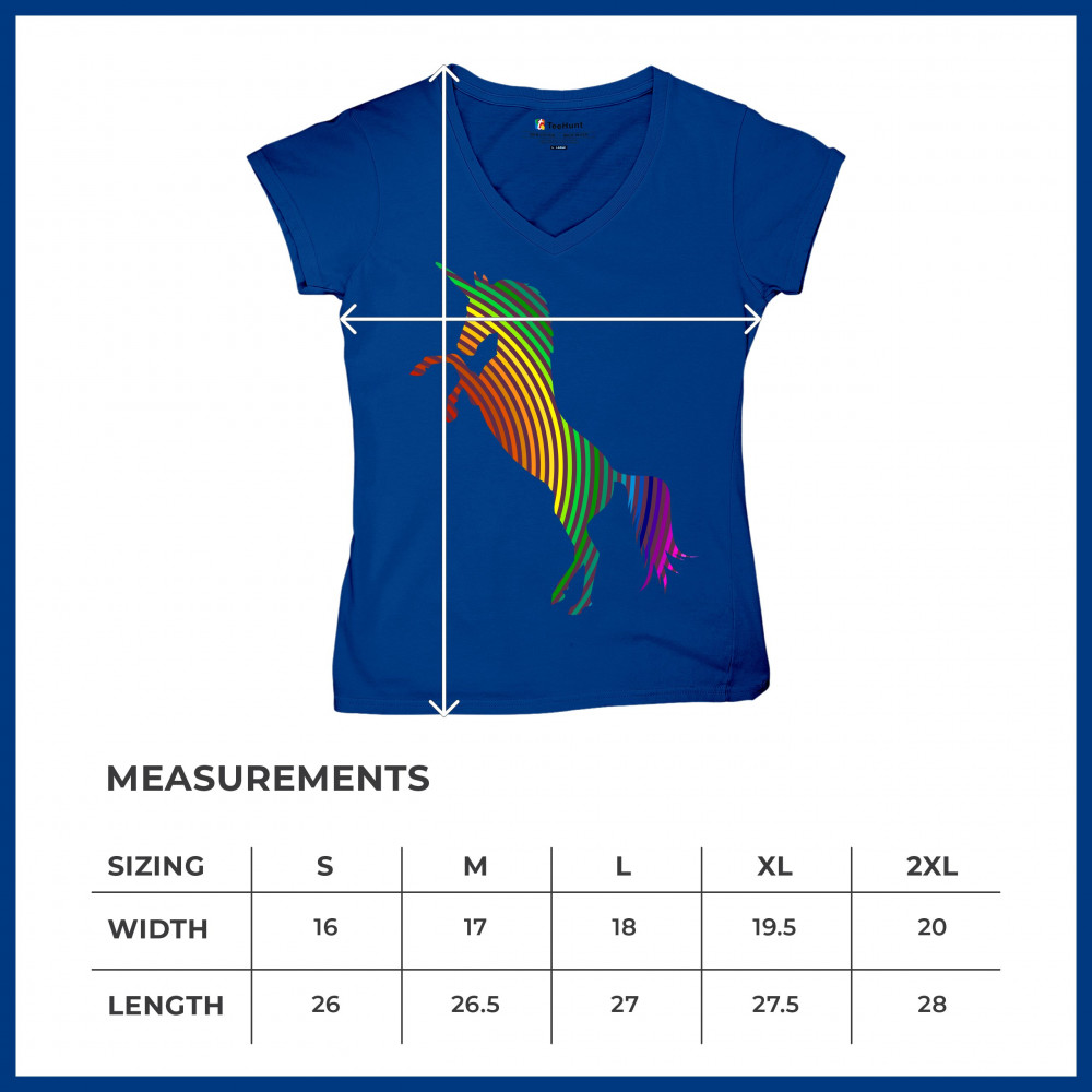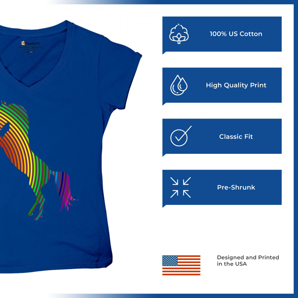 VIVID RAINBOW-STRIPE REARING unicorn women's v-neck t-shirt lgbt gay pride tee royal blue