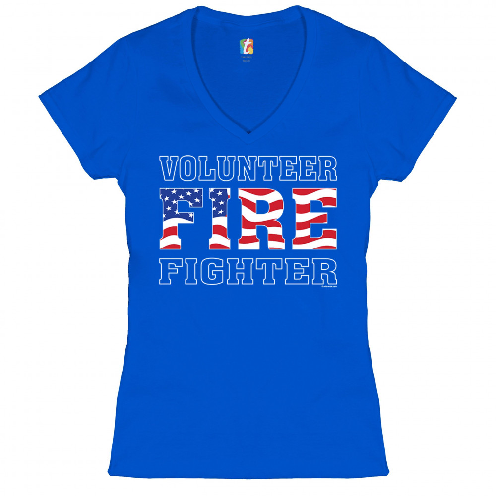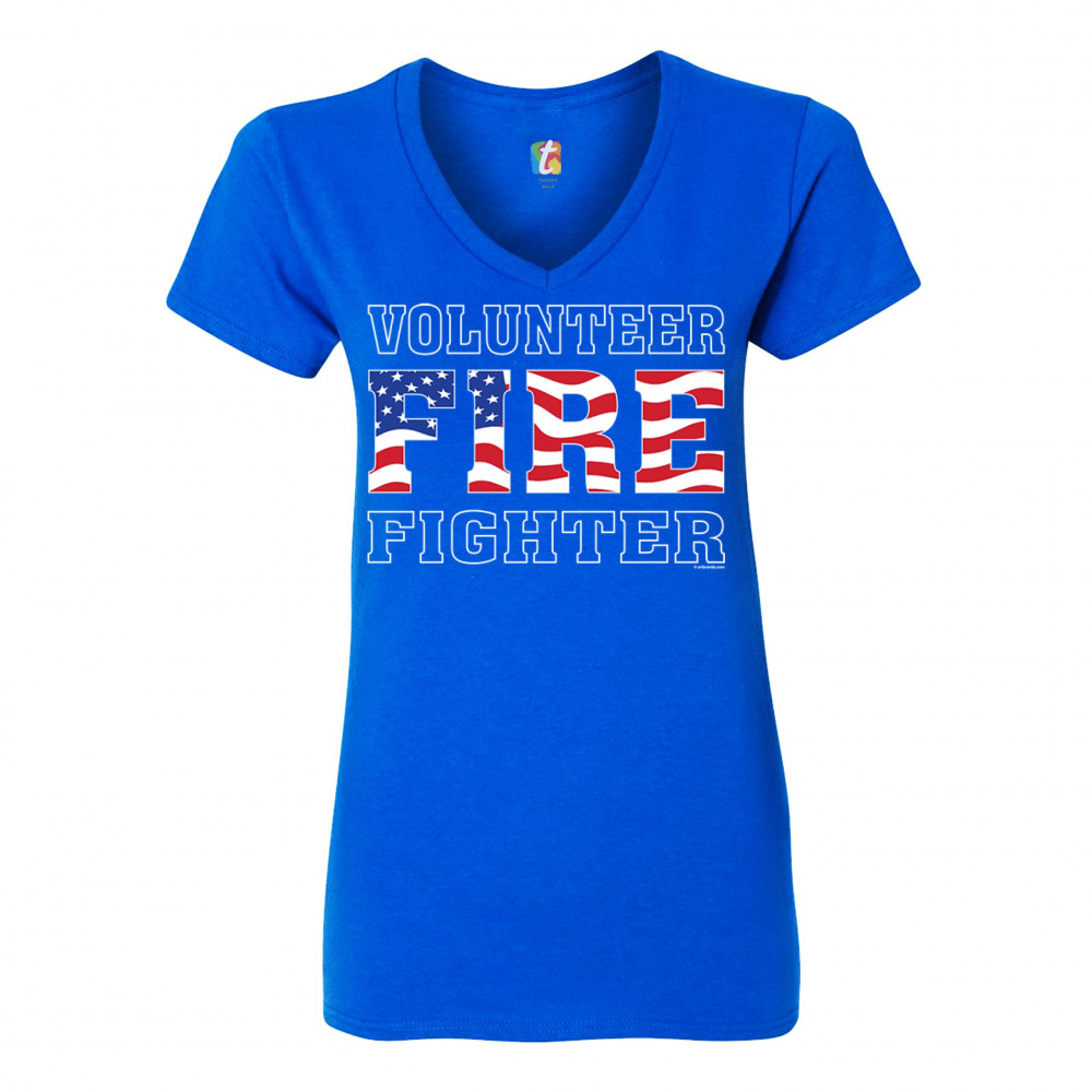 VOLUNTEER FIRE FIGHTER women's v-neck t-shirt fire and rescue patriotic tee royal blue
