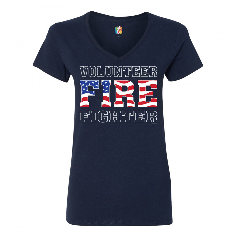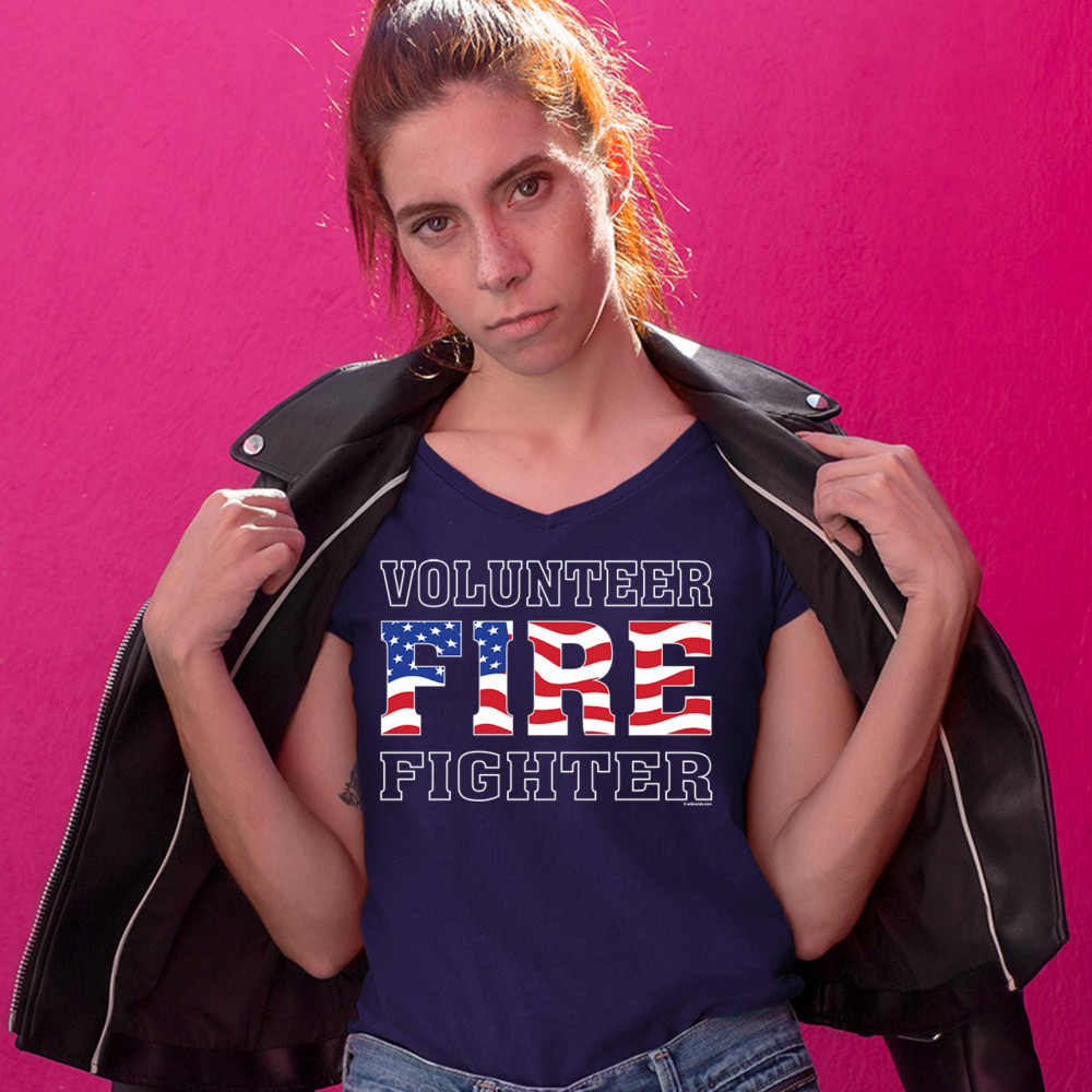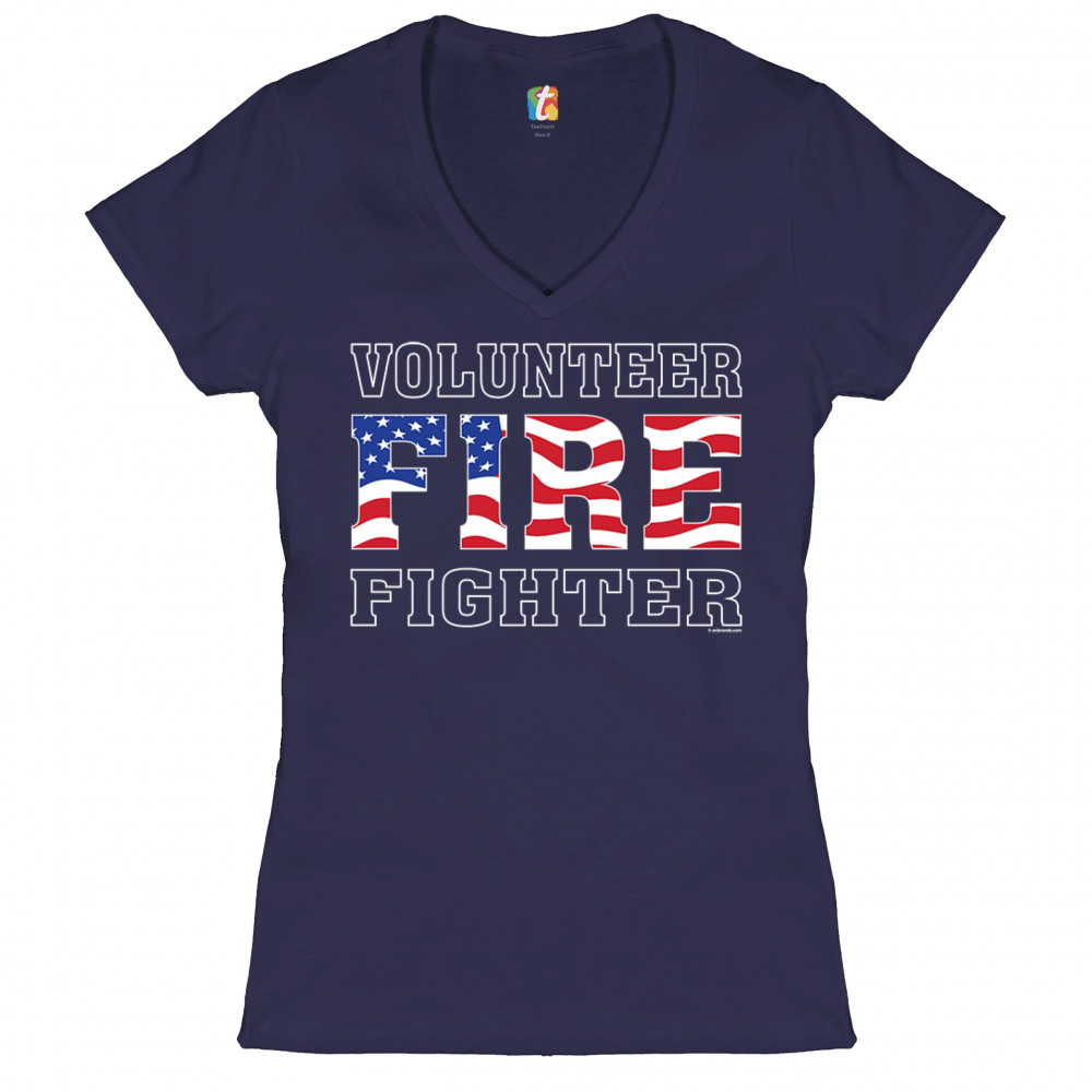 VOLUNTEER FIRE FIGHTER women's v-neck t-shirt fire and rescue patriotic tee navy blue