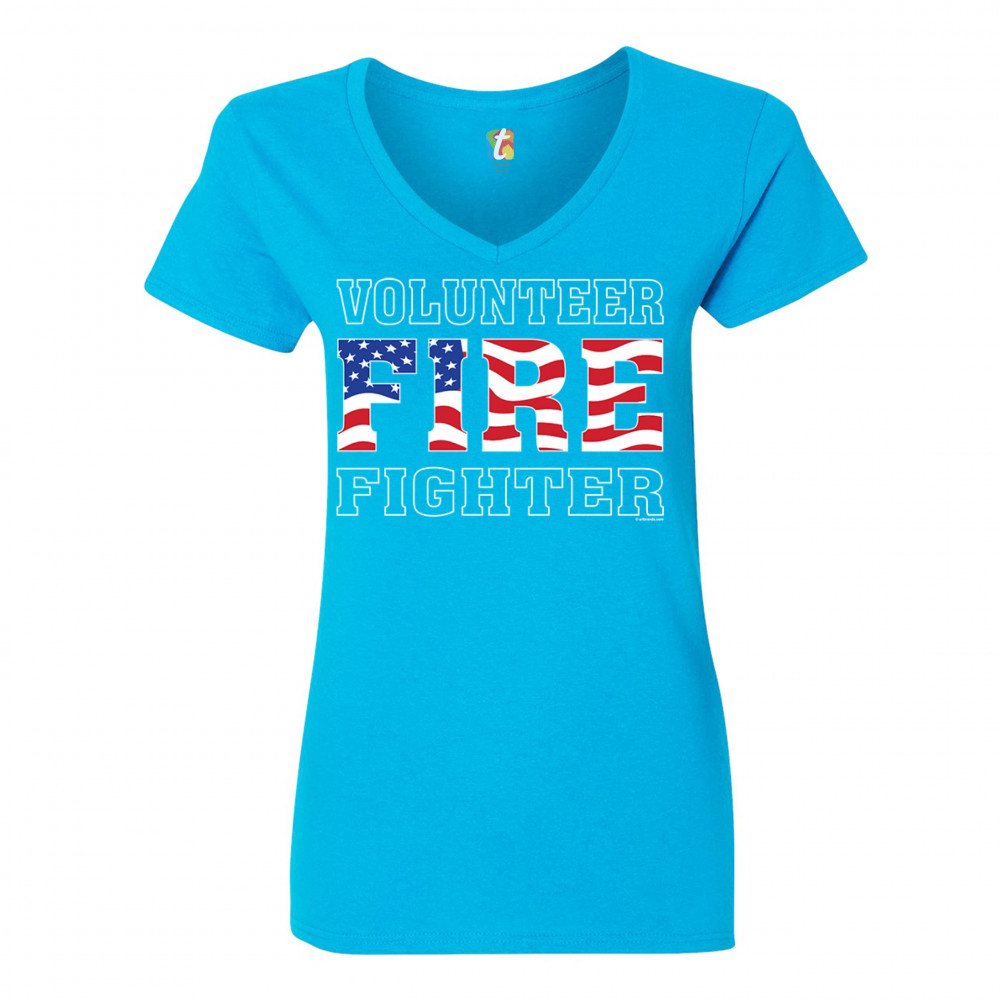 VOLUNTEER FIRE FIGHTER women's v-neck t-shirt fire and rescue patriotic tee turquoise