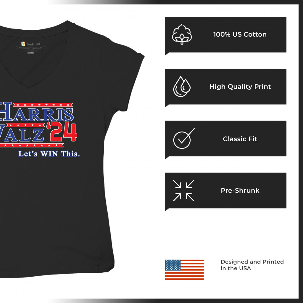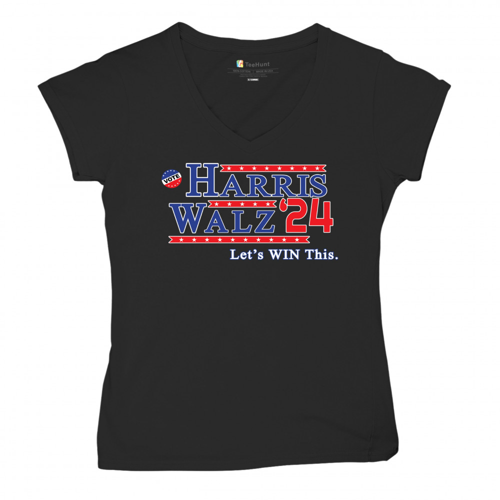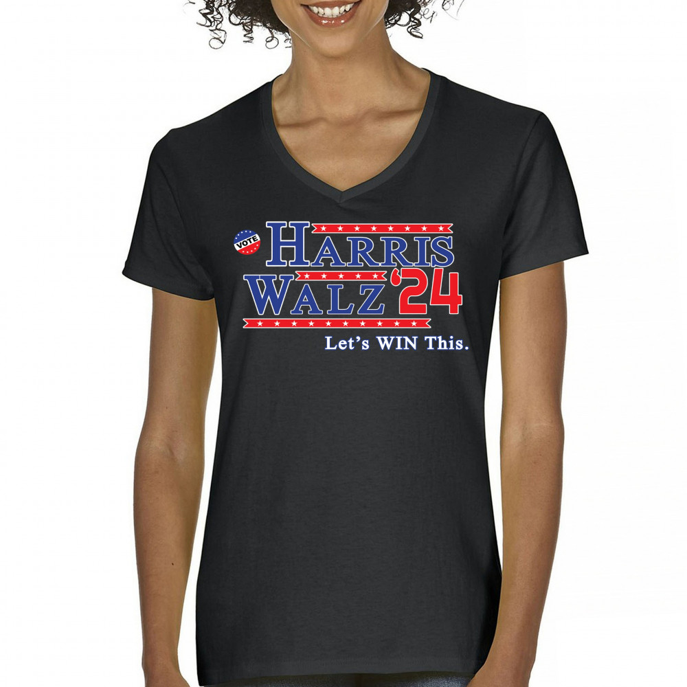 VOTE HARRIS WALZ 2024 women's v-neck t-shirt president i'm speaking kamala tee black