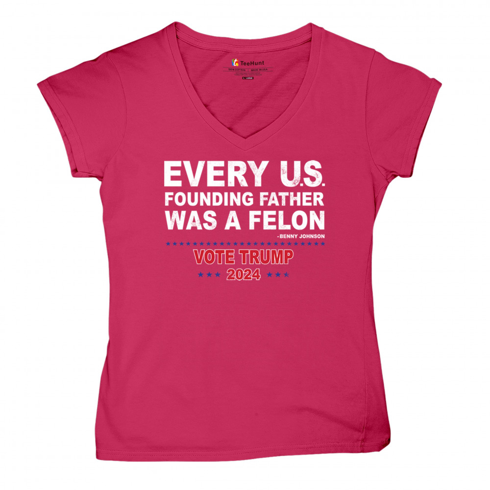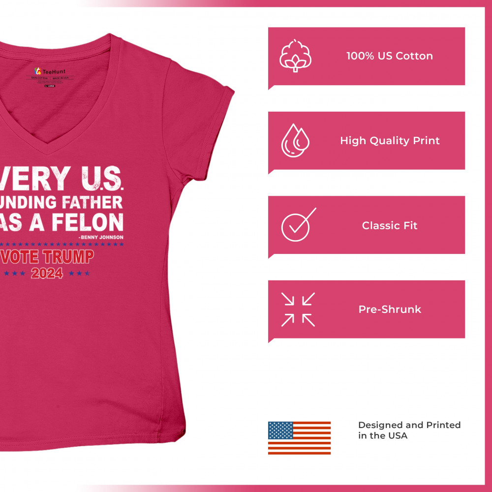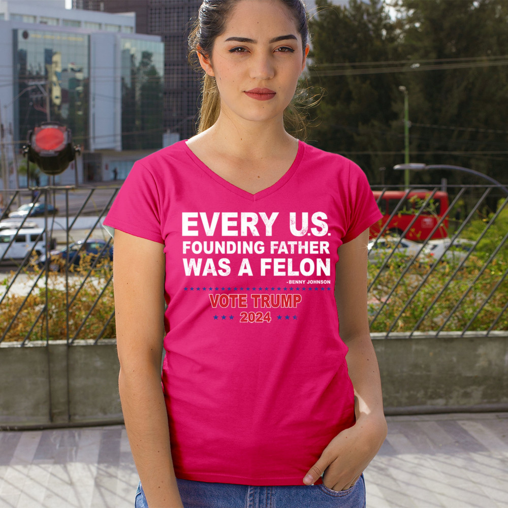 Show your support for Trump 2024 with a bold design quoting "Every U.S. founding father was a felon." Stand against political attacks and support an America-first vision.