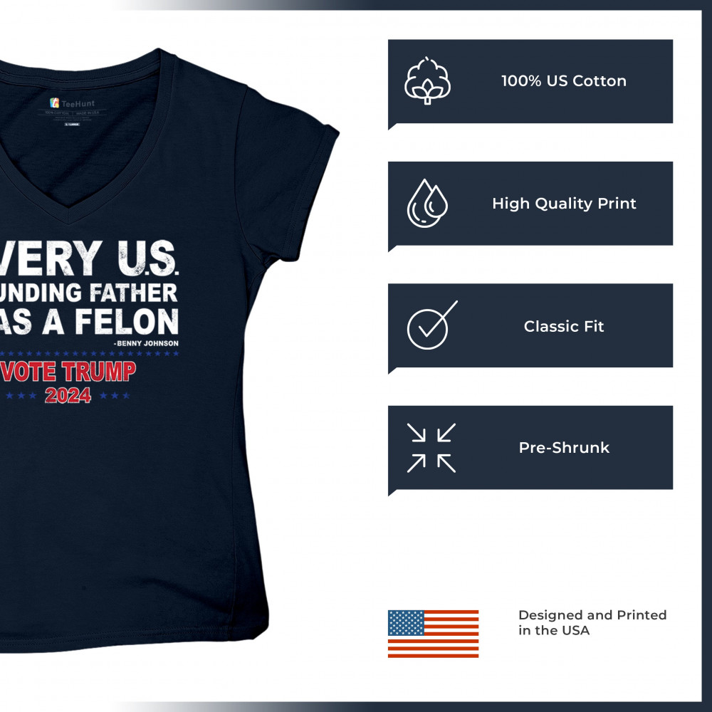Show your support for Trump 2024 with a bold design quoting "Every U.S. founding father was a felon." Stand against political attacks and support an America-first vision.