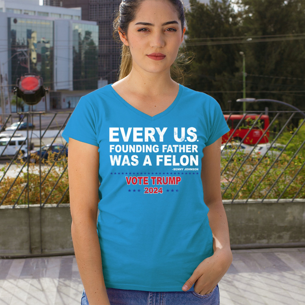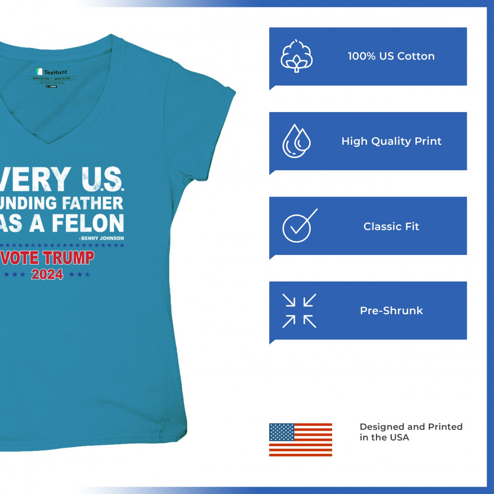Show your support for Trump 2024 with a bold design quoting "Every U.S. founding father was a felon." Stand against political attacks and support an America-first vision.