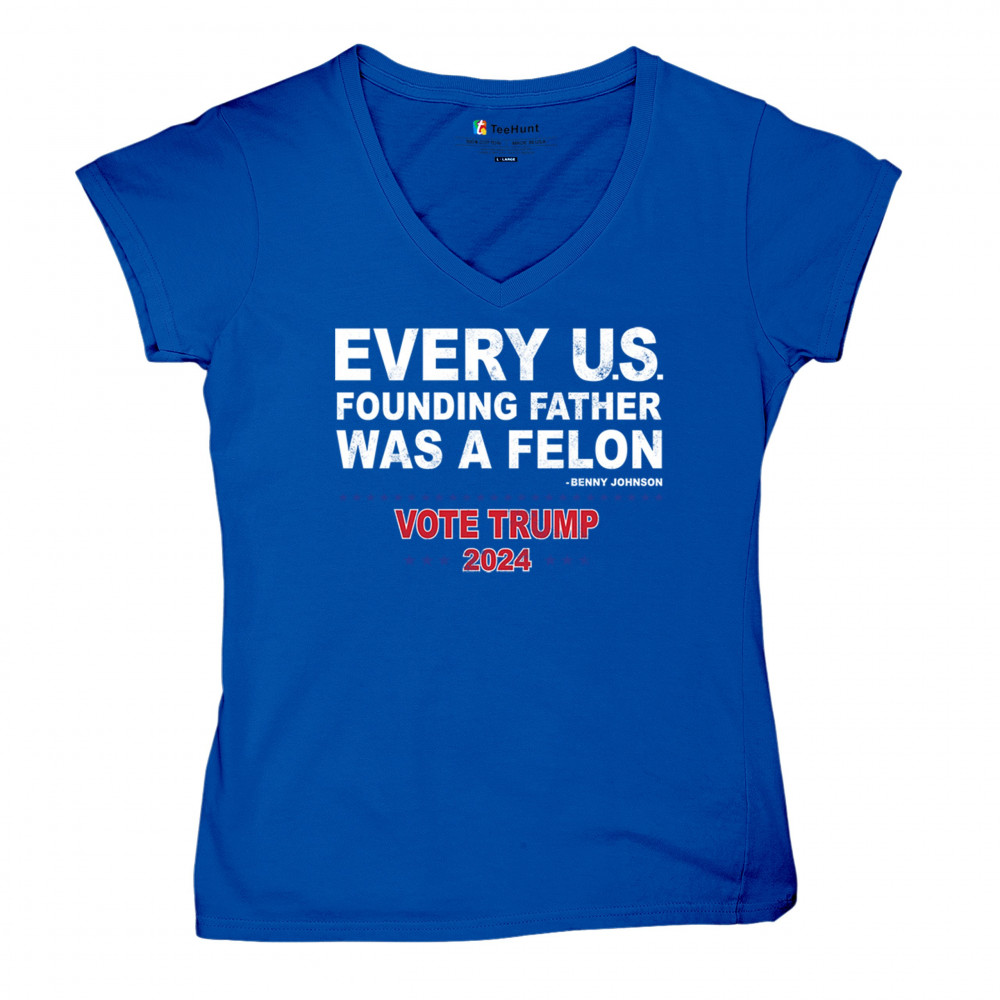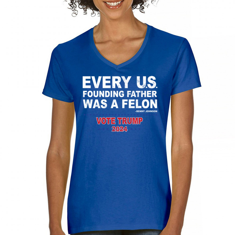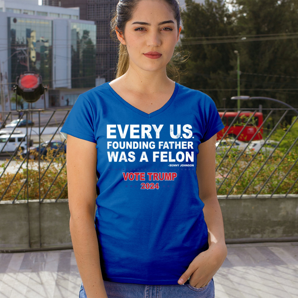 Show your support for Trump 2024 with a bold design quoting "Every U.S. founding father was a felon." Stand against political attacks and support an America-first vision.