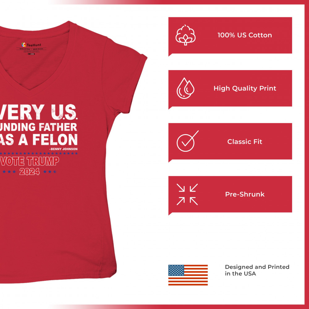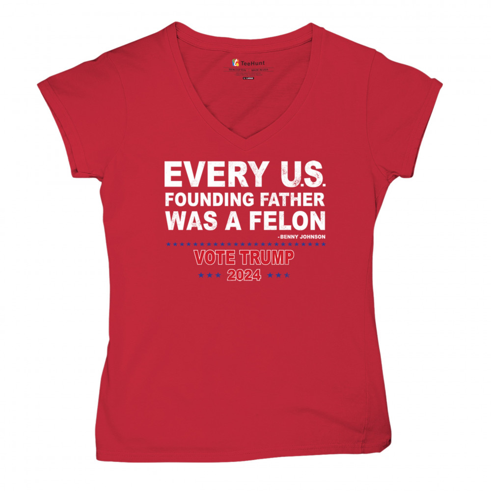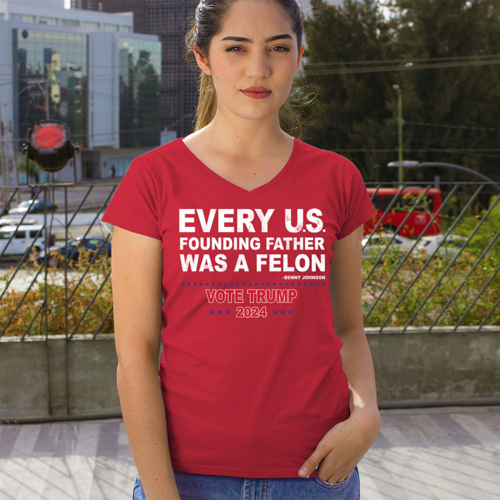 Show your support for Trump 2024 with a bold design quoting "Every U.S. founding father was a felon." Stand against political attacks and support an America-first vision.