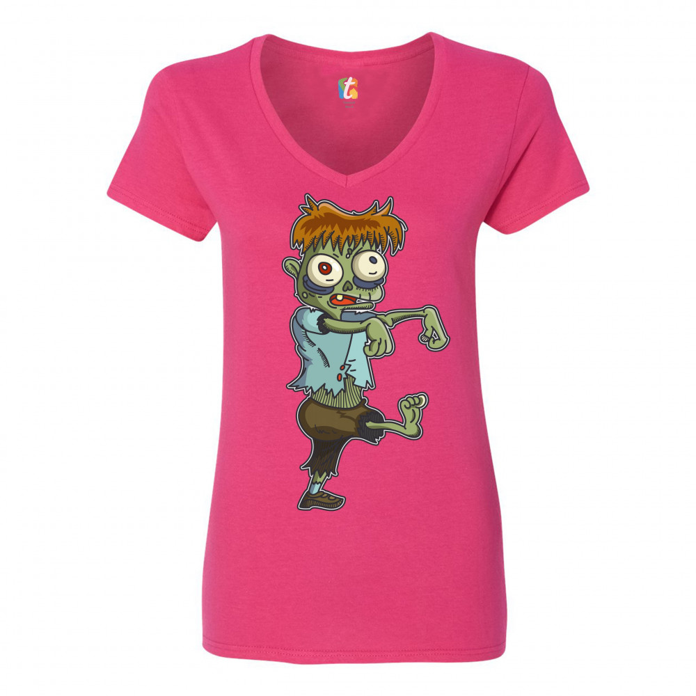 A print featuring a zombie, walking in a stereotypical movie fashion with the arms extended forward. The zombie has messy ginger hair and eyes popping out but he looks rather funny and non-threatening. A great choice for a person who is into horror movies