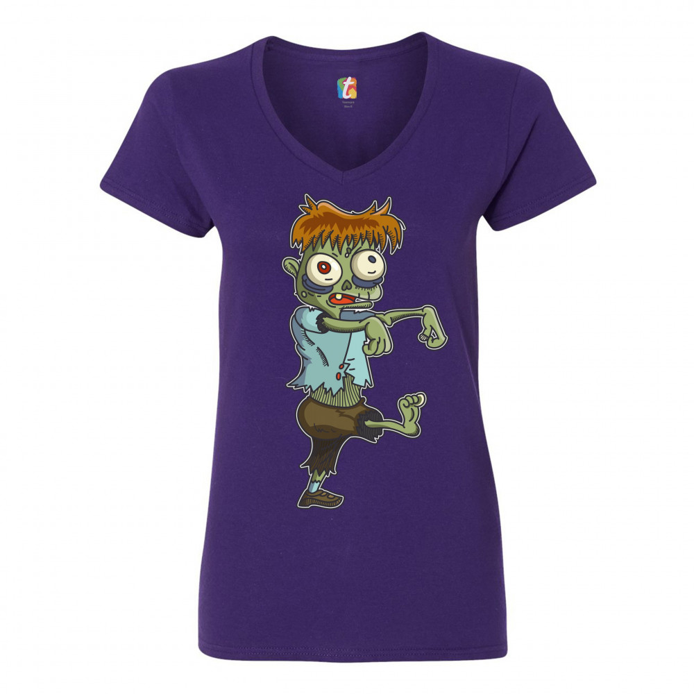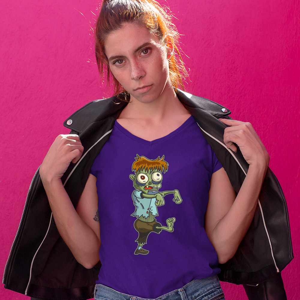 A print featuring a zombie, walking in a stereotypical movie fashion with the arms extended forward. The zombie has messy ginger hair and eyes popping out but he looks rather funny and non-threatening. A great choice for a person who is into horror movies